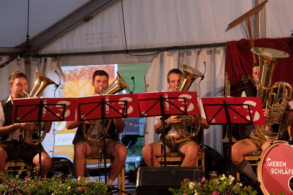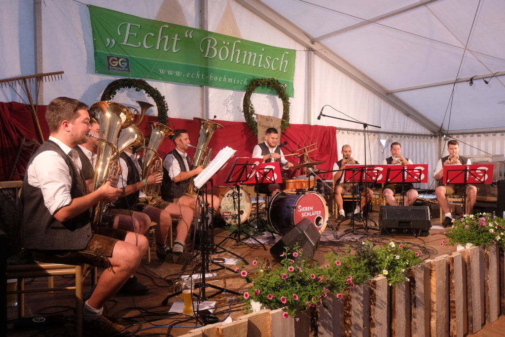 Eggmannsried – Nach dem Auftakt am 4. Juli mit DJ Philhouse, großer Lichtshow, Shot- und Cocktailbar auf der Wiese auf dem Festgelände, ging es am Samstagabend beim Mühlenfest Eggmannsried mit Top-Blasmusik im Festzelt weiter. Die jungen „Siebenschläfer“ aus der Region bereiteten stimmungsmäßig das Feld für „Echt.Böhmisch“, einem Septett aus Tirol, das sich ganz und gar der böhmisch-mährischen Blasmusik von Ernst Mosch und seinen Erben verschrieben hat.