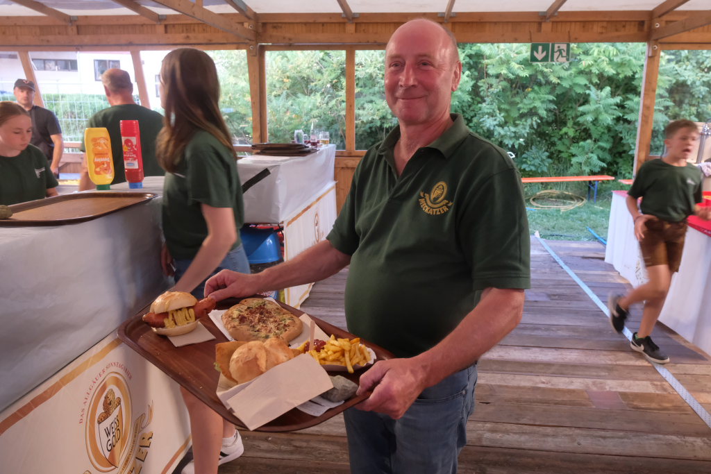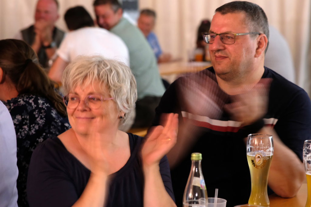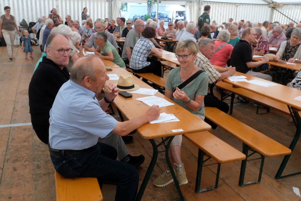 Nach dem Segen und dem Schlusslied „Nun danket all“ waren sofort die fleißigen Helfer des Musikvereines da, um die Gäste des Frühschoppens mit Trinken und Essen zu versorgen. Die Wohlgerüche aus der Küche waren Matthias Winstel bereits am Ende des Gottesdienstes in die Nase gekrochen, wie er schmunzelnd bei der Verabschiedung bemerkte.