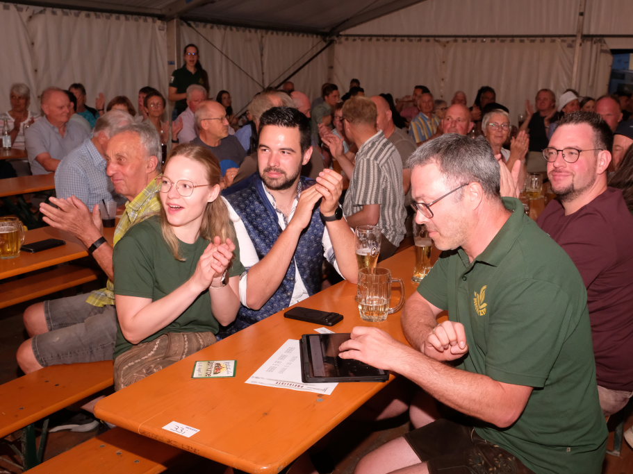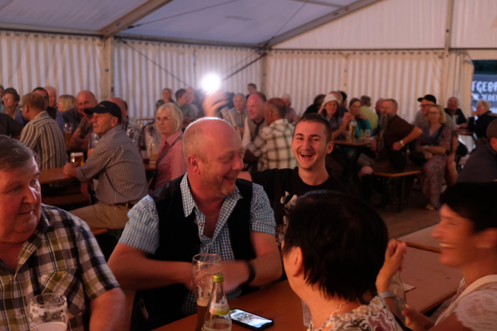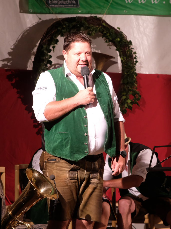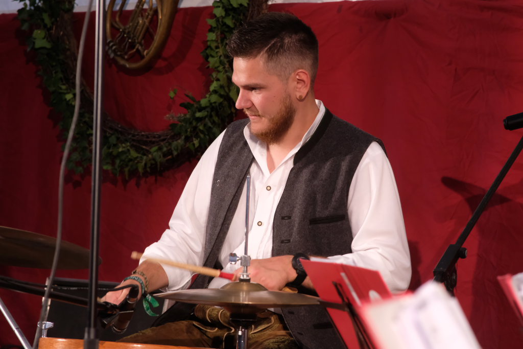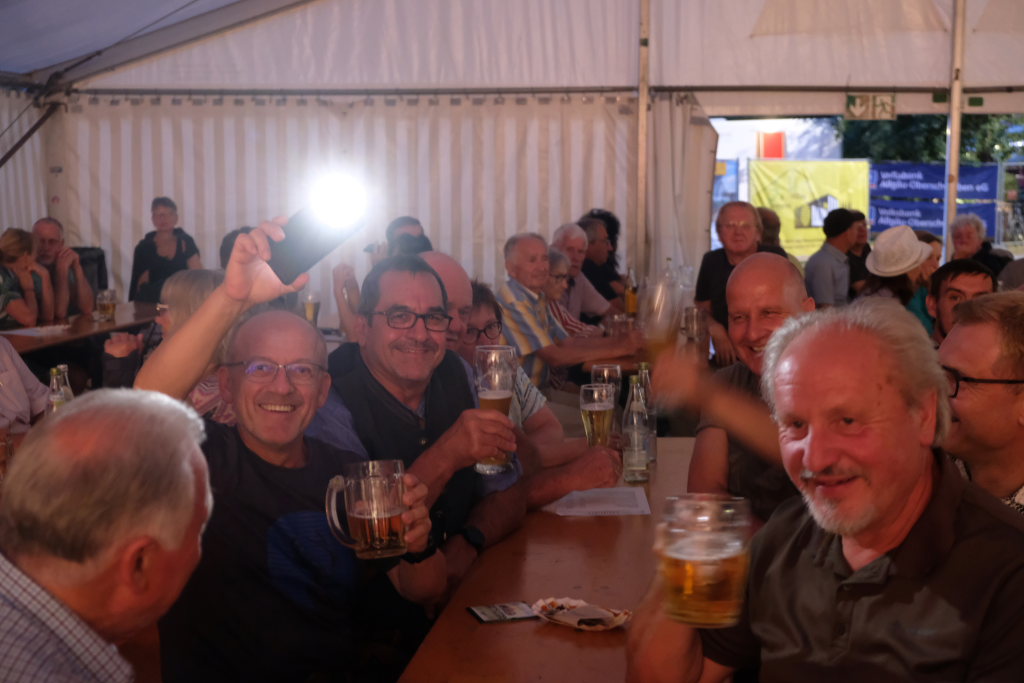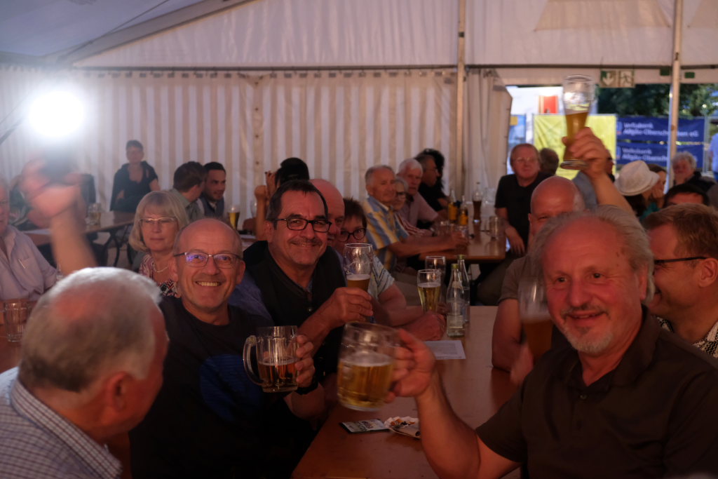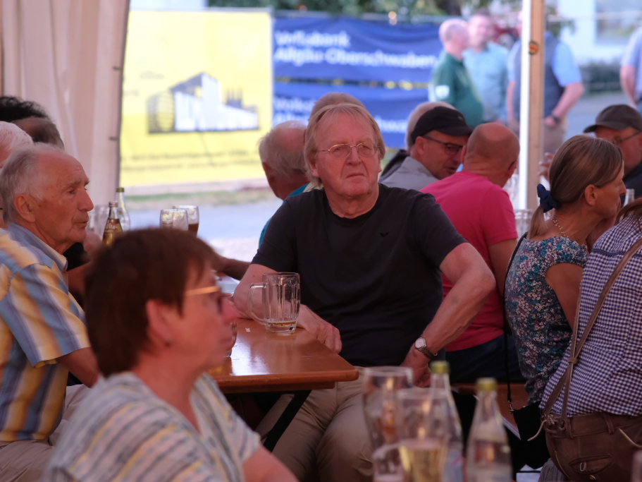 Kein Wunder also, dass an diesem Abend neben vielen Blasmusikern aus der Großgemeinde auch der „Godfather der oberschwäbischen Dorfmusikanten“, der Musiker, Dirigent und Komponist Peter Schad, das Festzelt bei der Stelzenmühle beehrte. Denn viele seiner Kompositionen stehen in der Tradition dieser Musik. Ebenso wie die von Bernd Butscher, langjähriger Dirigent der gastgebenden Musikkapelle Eggmannsried, der an diesem Abend die Bühnen-Technik betreute.