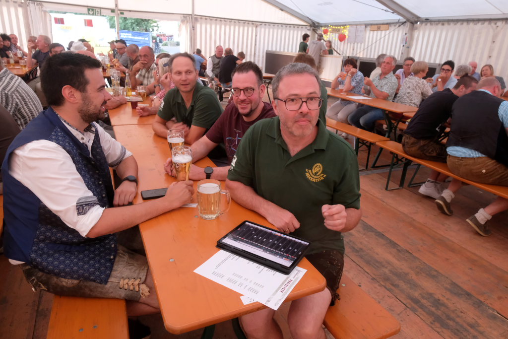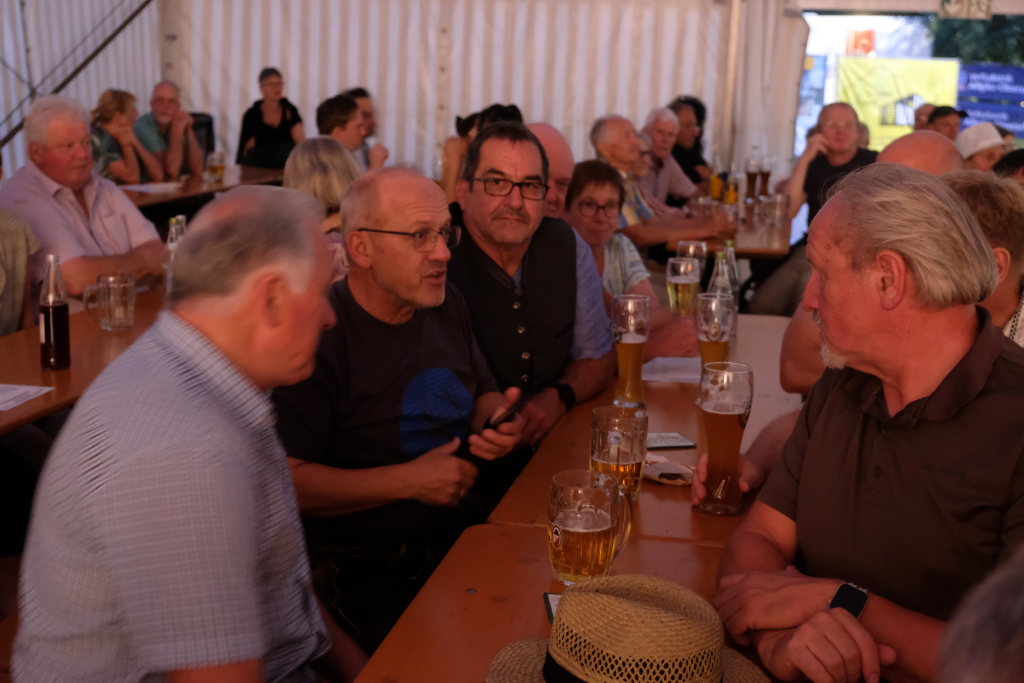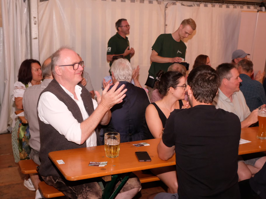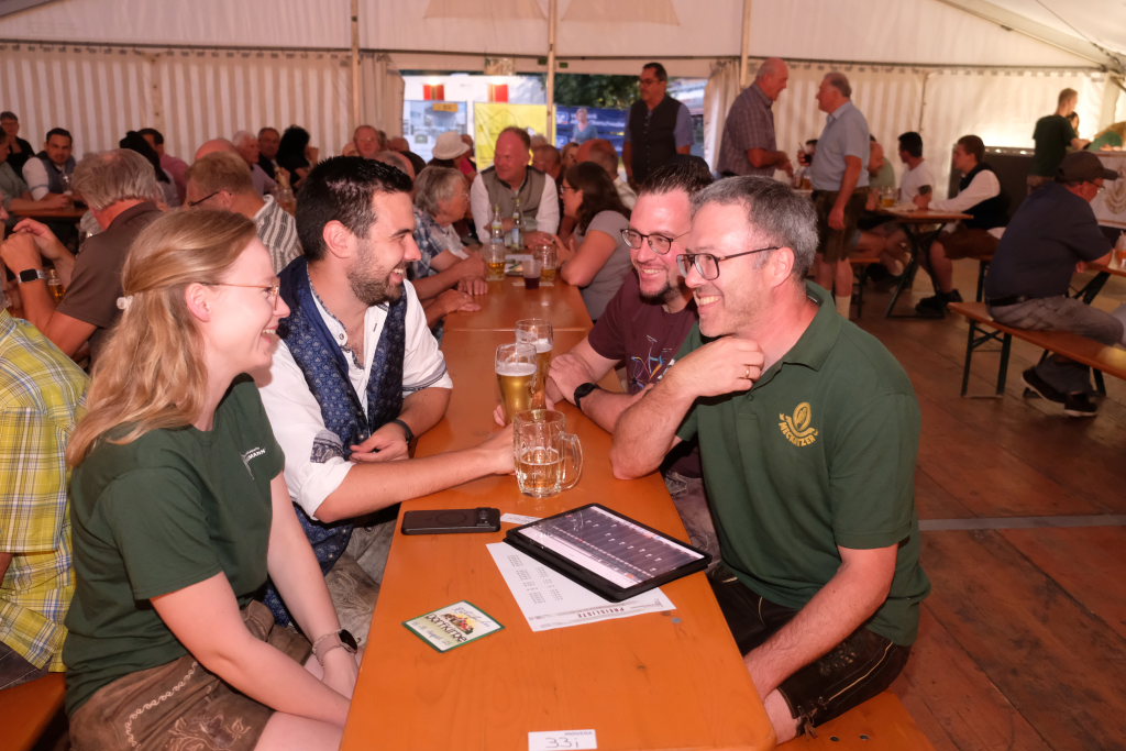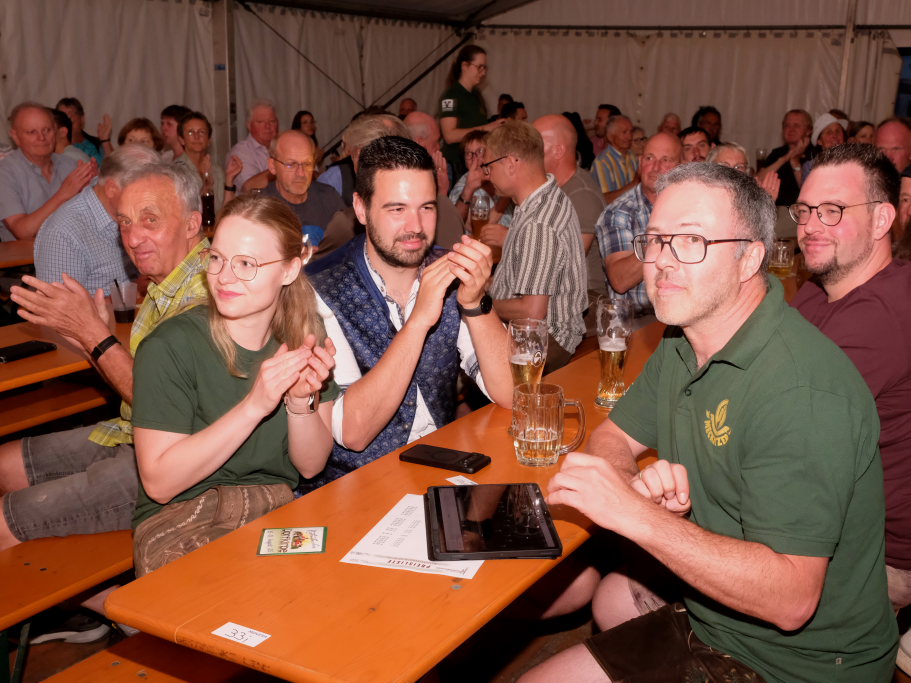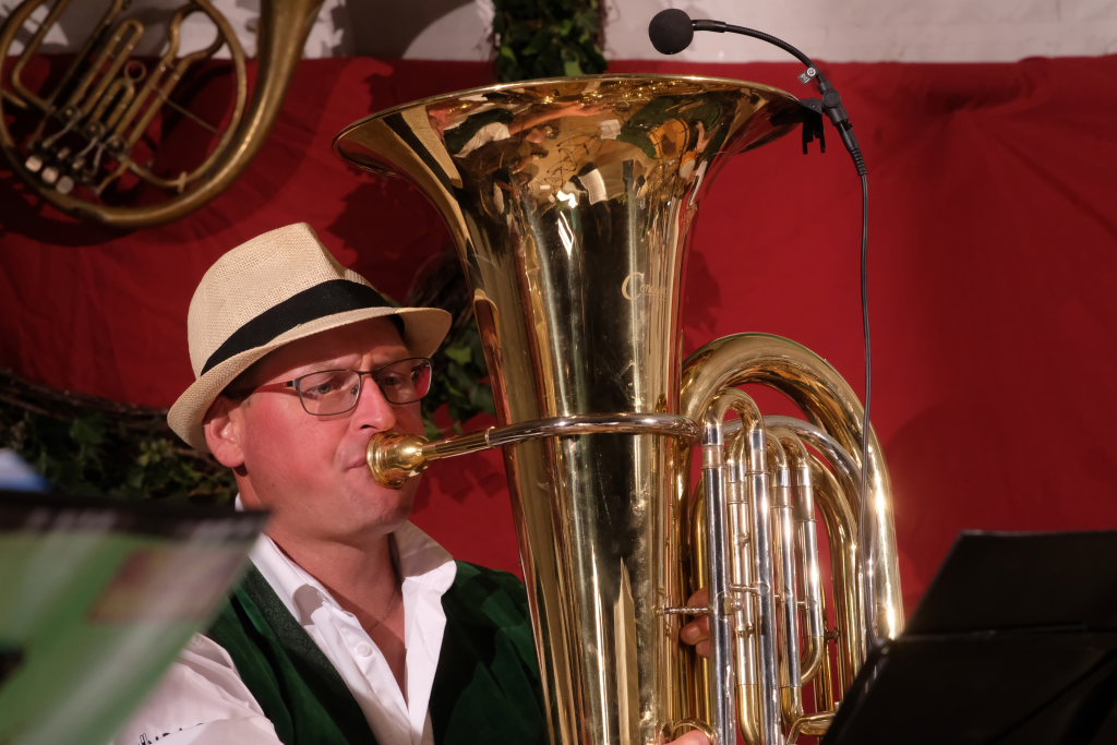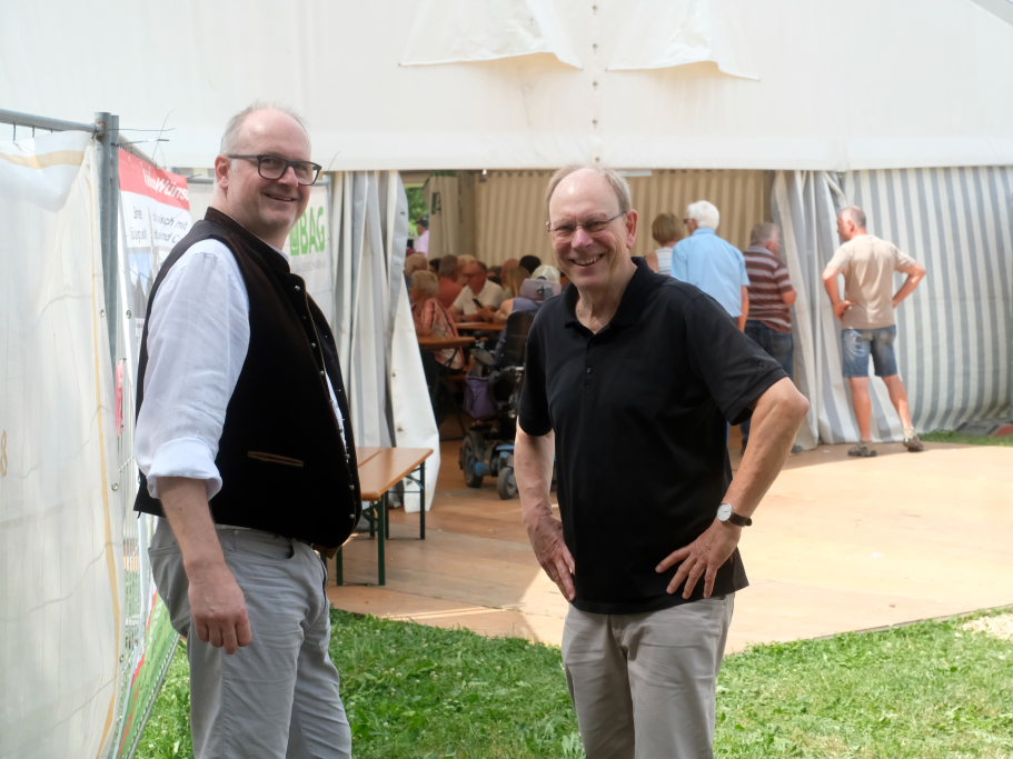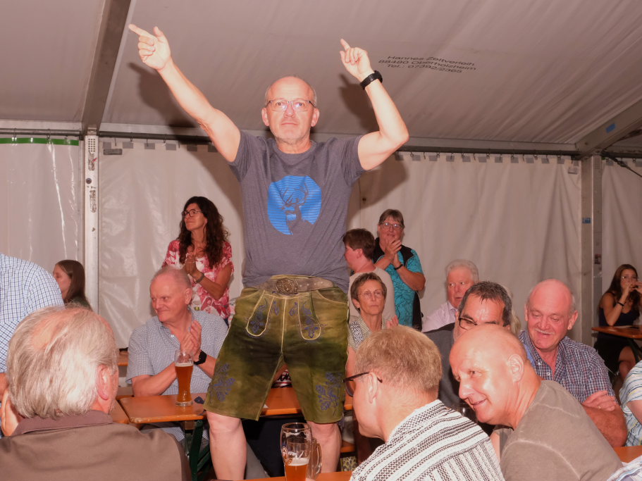 Kein Wunder also, dass an diesem Abend neben vielen Blasmusikern aus der Großgemeinde auch der „Godfather der oberschwäbischen Dorfmusikanten“, der Musiker, Dirigent und Komponist Peter Schad, das Festzelt bei der Stelzenmühle beehrte. Denn viele seiner Kompositionen stehen in der Tradition dieser Musik. Ebenso wie die von Bernd Butscher, langjähriger Dirigent der gastgebenden Musikkapelle Eggmannsried, der an diesem Abend die Bühnen-Technik betreute.