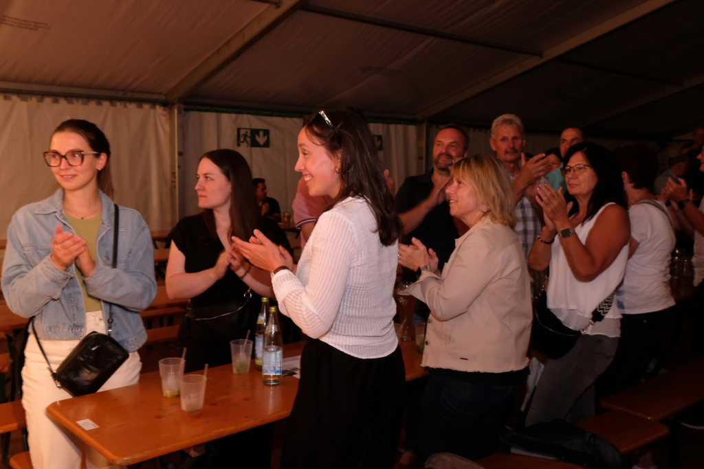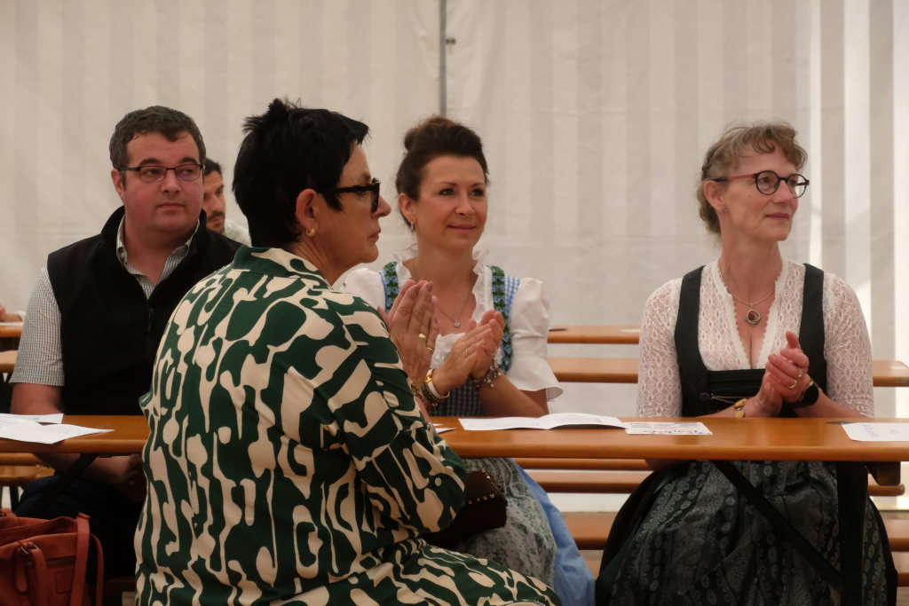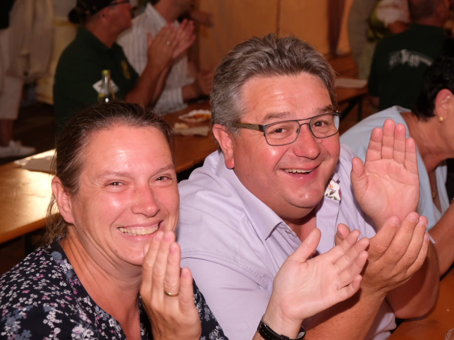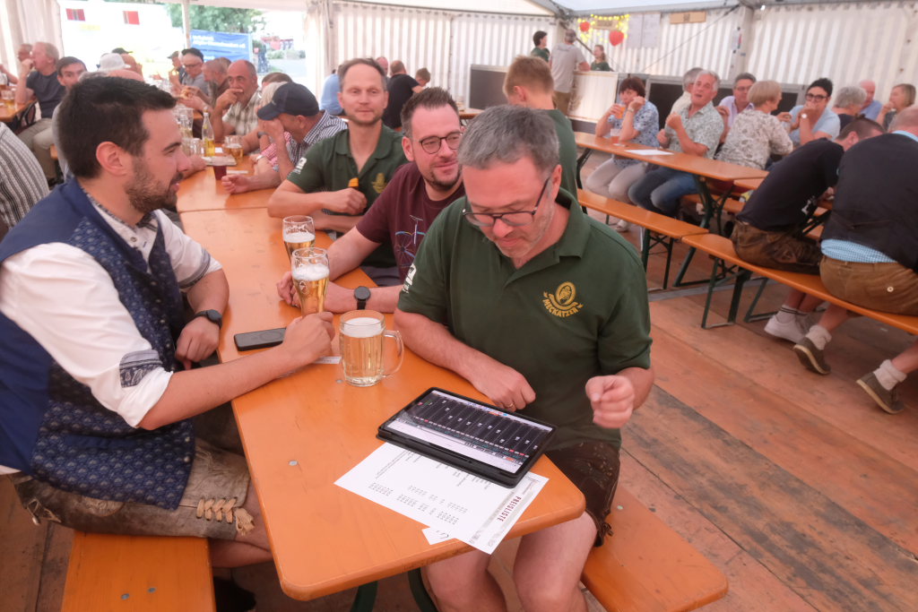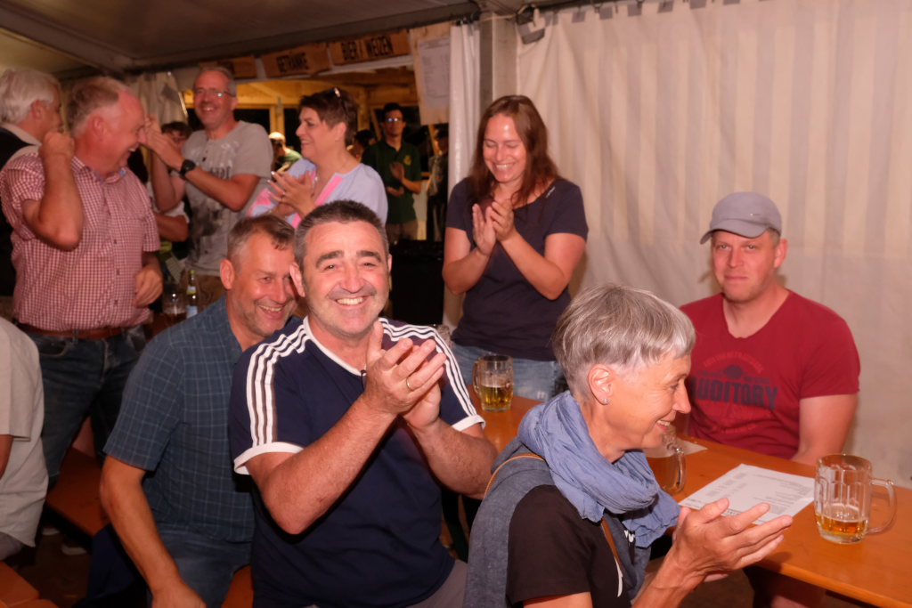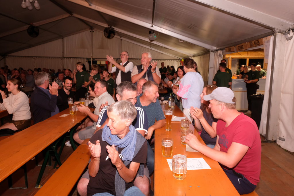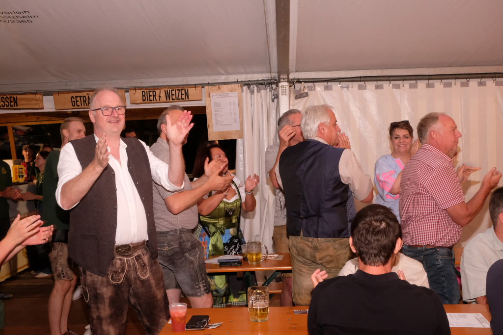 Kein Wunder also, dass an diesem Abend neben vielen Blasmusikern aus der Großgemeinde auch der „Godfather der oberschwäbischen Dorfmusikanten“, der Musiker, Dirigent und Komponist Peter Schad, das Festzelt bei der Stelzenmühle beehrte. Denn viele seiner Kompositionen stehen in der Tradition dieser Musik. Ebenso wie die von Bernd Butscher, langjähriger Dirigent der gastgebenden Musikkapelle Eggmannsried, der an diesem Abend die Bühnen-Technik betreute.