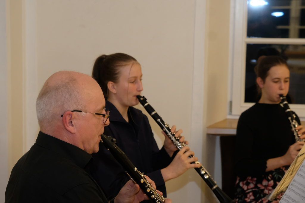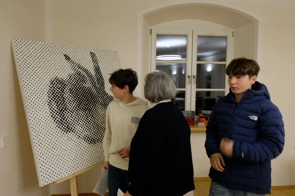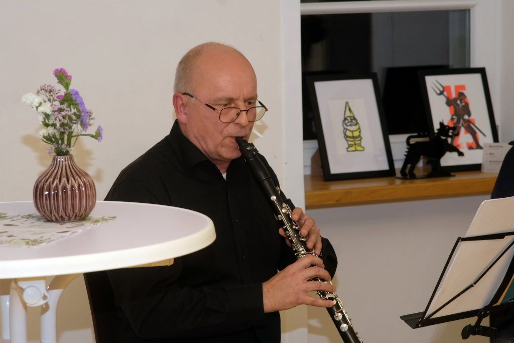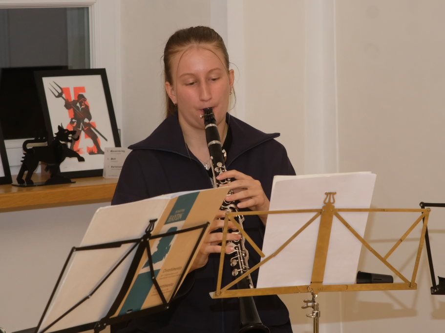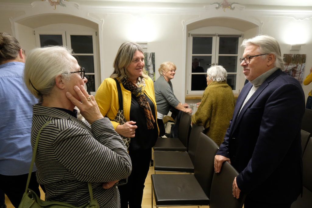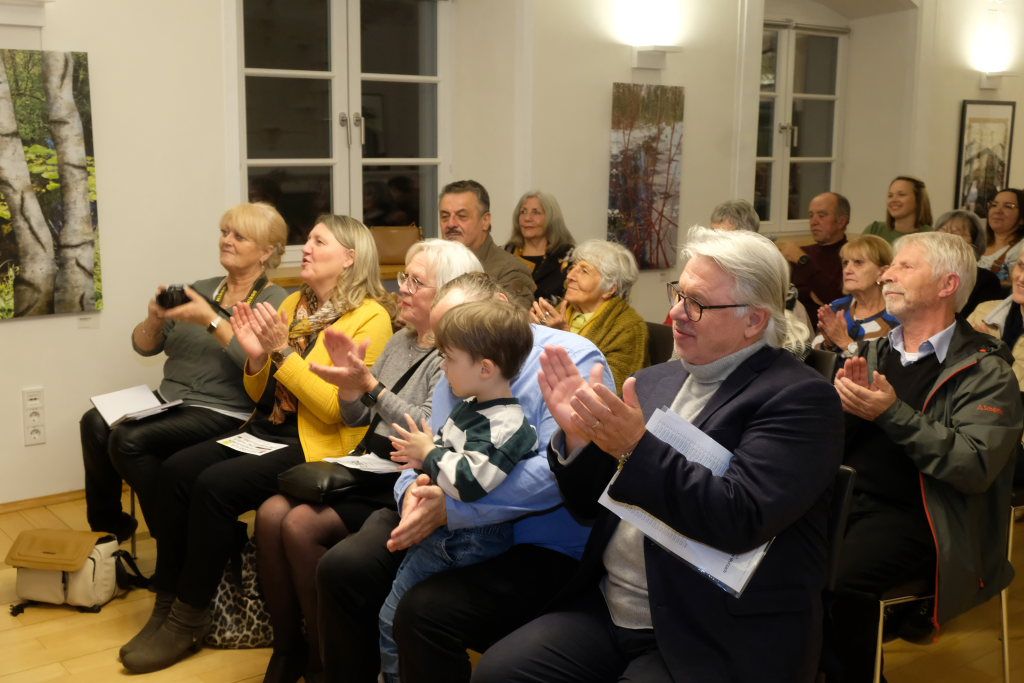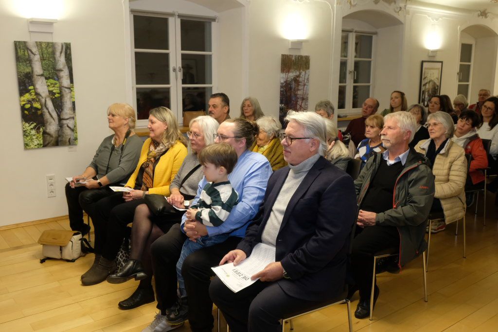 Bad Wurzach – An letzten Freitag (8.11.) wurde in der Städtischen Galerie in der Stadtbücherei von Maria Rosengarten die 259. Kunstausstellung mit dem Titel „Die Zwei“ eröffnet. Die beiden Künstler Gudrun Dörfler-Wißkirchen und Felix Wißkirchen sind Mutter und Sohn. Die Eröffnung, bei der Robert Beck die Laudatio auf die beiden Künstler hielt, besuchten rund 50 Kunstfreunde, darunter auch Bürgermeisterin Alexandra Scherer. Für den musikalischen Rahmen sorgte ein Klarinetten-Trio der Jugendmusikschule mit Georg Stankalla, Theresa Merk und Amelie Neuhoff.
