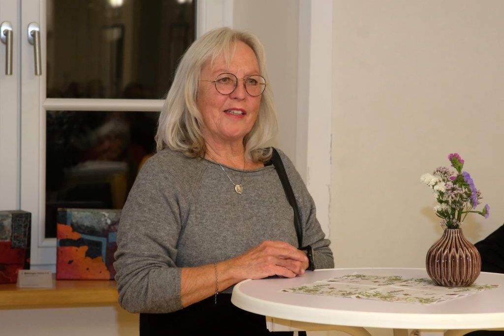 Bürgermeisterin Alexandra Scherer freute sich in ihrem Grußwort, dass die städtischen Institutionen wie die Jugendmusikschule und die beiden Ausstellungsmacherinnen Christel Linge und Doris Schäfer der städtischen Galerie so gut zusammenarbeiten.