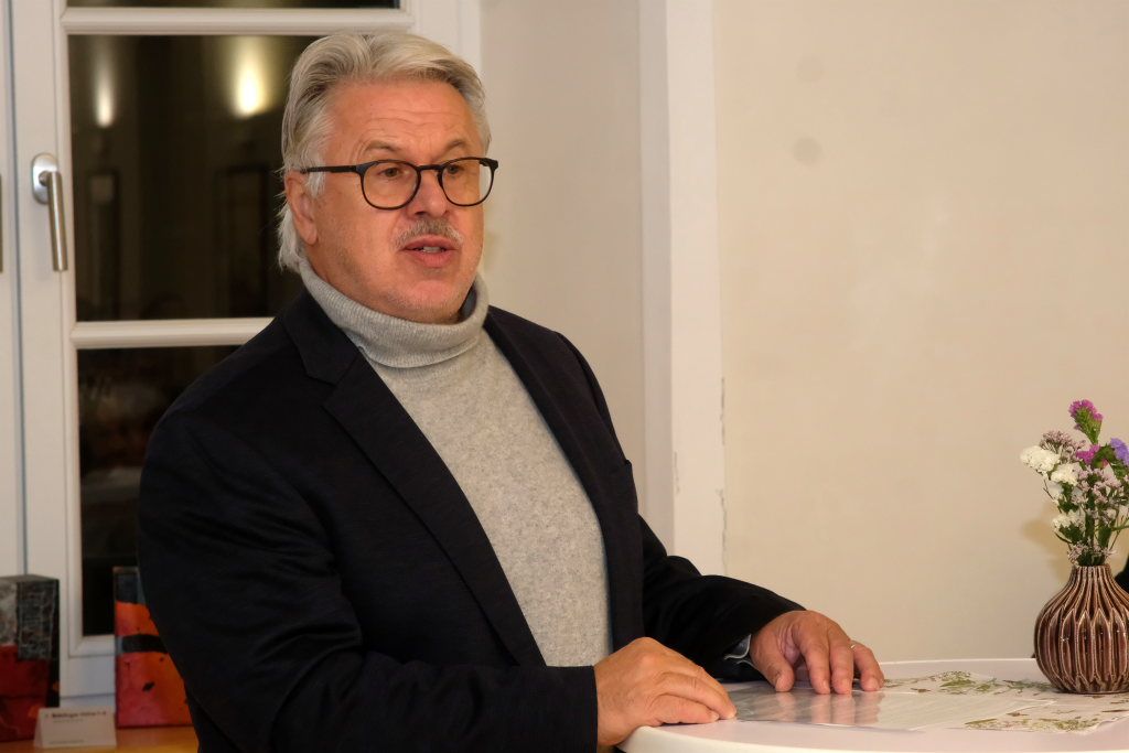 Robert Beck, der die Laudatio auf die beiden Künstler hielt, bedankte sich zunächst bei den beiden ehrenamtlichen Galeristinnen, ehe er auf die künstlerische Tätigkeit von Gudrun Dörfler-Wißkirchen einging. Diese habe sich in über 40 Jahren durch zahlreiche Kurse, Seminare und Kunstakademien zu der vielschichtigen, ausdrucksstarken Künstlerin weiterentwickelt, die sie heute ist. „Sie hat sich ihr Können wirklich erarbeitet. So trifft meines Erachtens der Ausspruch von Karl Valentin bei ihr recht gut zu, der da sagt: Kunst ist schön, macht aber viel Arbeit!“