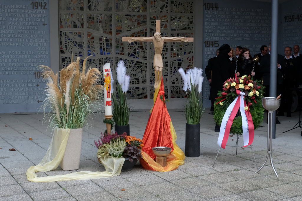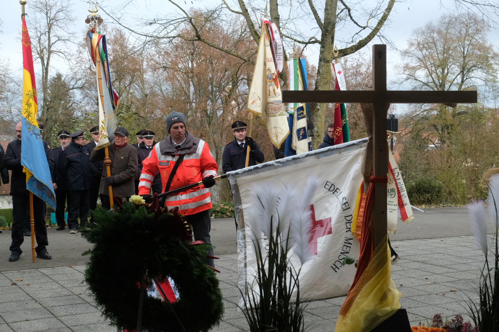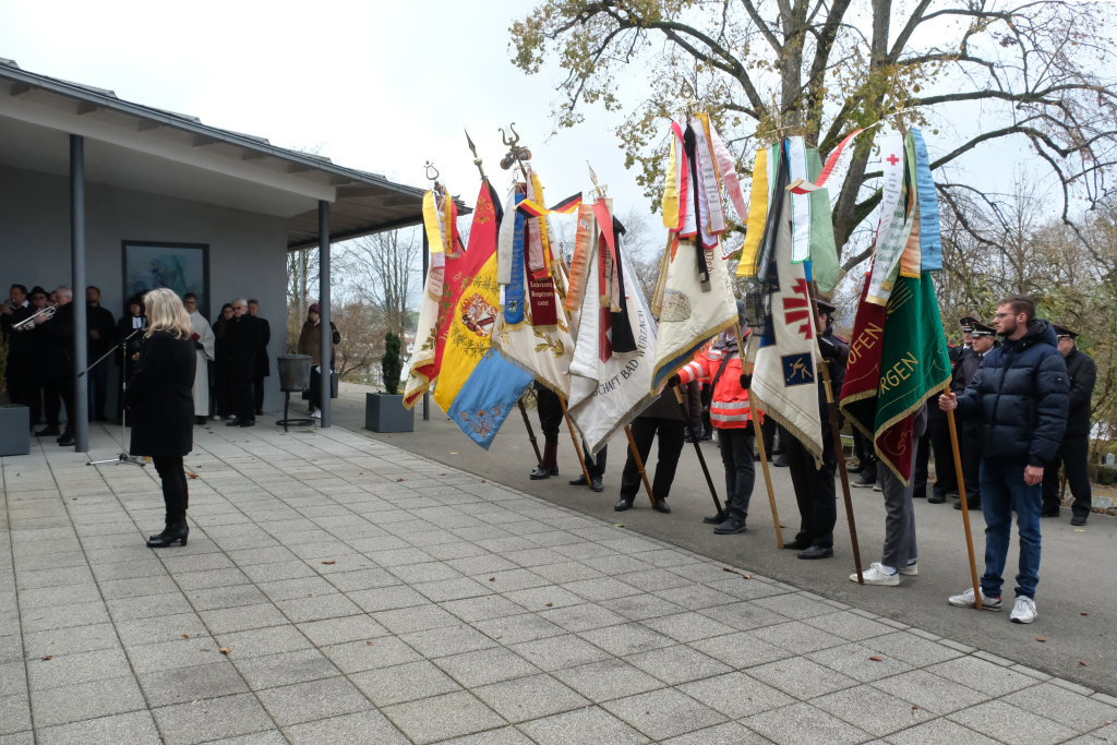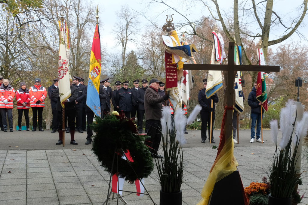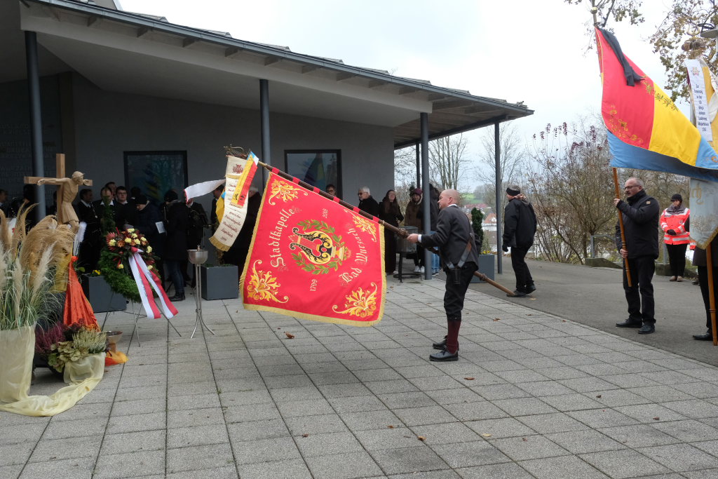 Bad Wurzach – Auf Einladung der Stadtverwaltung und der Kirchen versammelten sich viele Bürger, Abordnungen von Vereinen und Institutionen am Kriegerdenkmal an der Aussegnungshalle, um der Opfer von Kriegen, Terror und Gewalt zu gedenken.