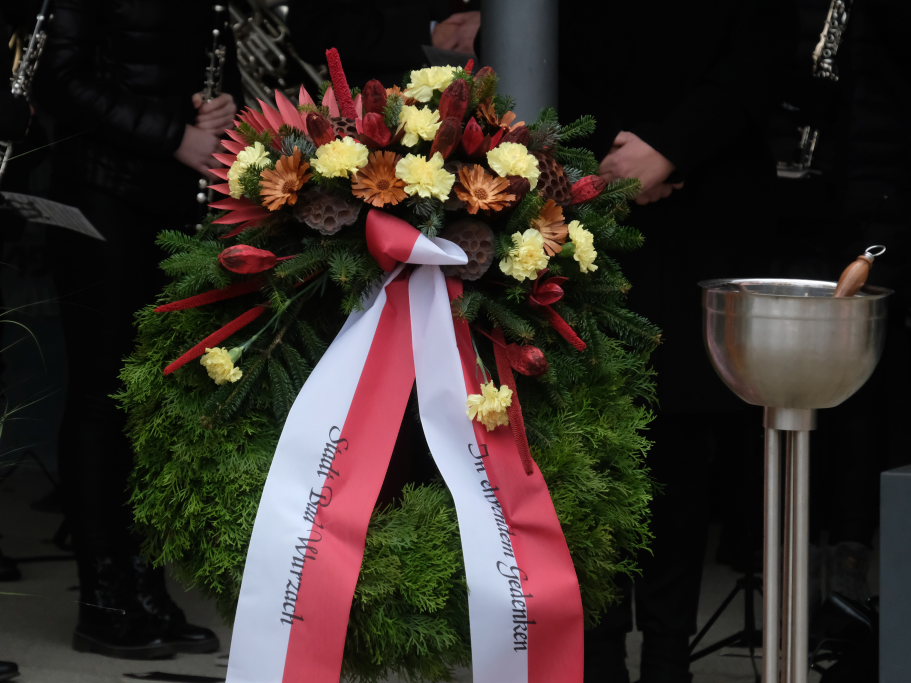Bad Wurzach sei deshalb sehr dankbar für die vier Städtepartnerschaften. Die freundschaftlichen Beziehungen dorthin seien keine Selbstverständlichkeit und kein Selbstläufer, sondern das Ergebnis von Engagement und Vertrauen zueinander. „Erst in den letzten Tagen haben wir erfahren, dass daraus echte und belastbare Freundschaften entstanden sind.“ Dies sei die beste Basis für Frieden, worin sich bei uns doch alle einig seien. Der Volkstrauertag sei wieder einmal ein Auftrag an alle, sich für eine friedliche Gegenwart und Zukunft einzusetzen.
