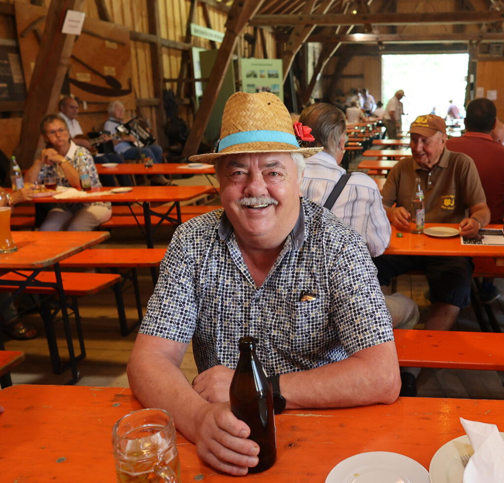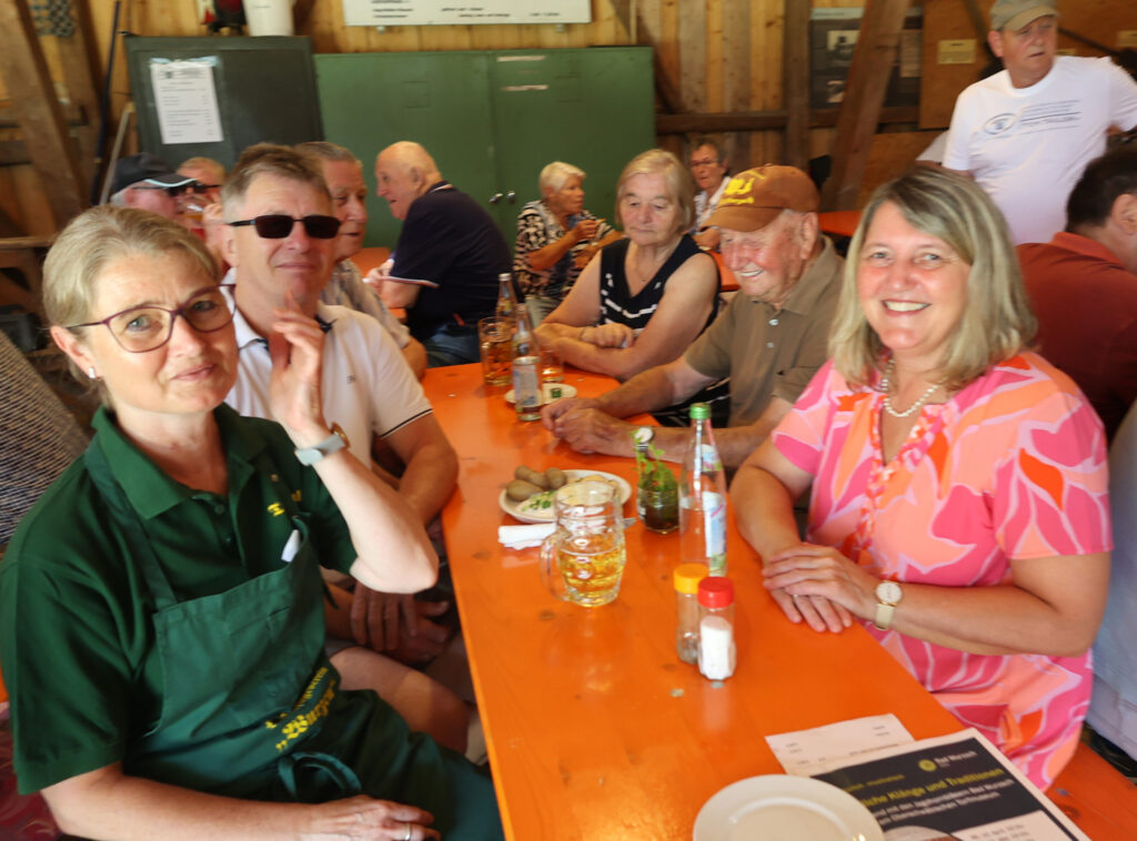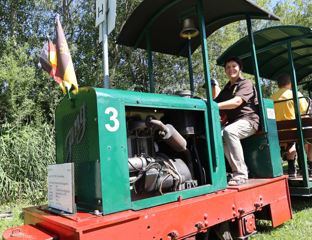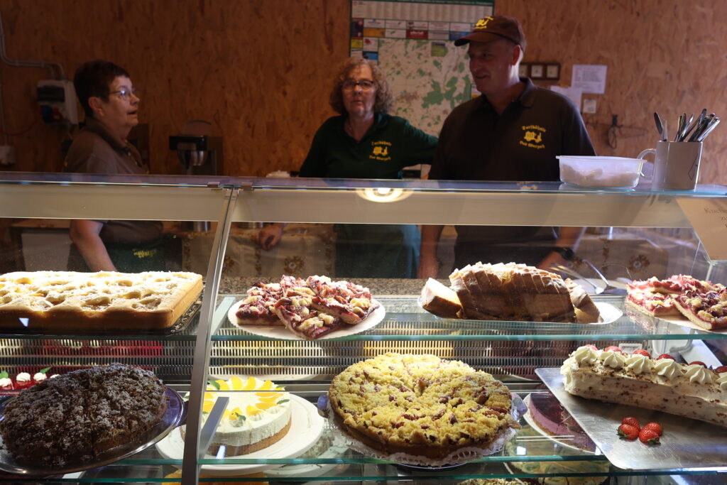 Die 15 aktiven technischen Helfer waren den ganzen Tag mit mehreren Lokomotiven und den Wagen unterwegs. Weichen mussten rechtzeitig gestellt werden und die zum Teil von weit her angereisten Besucher mit Informationen versorgt werden. Die hat Gästeführer Peter Schad draußen am ehemaligen Torfwerk mit historischem und naturkundlichem Wissen geliefert. So gibt es im Ried rund 250 Vogelarten. Drinnen in der Halle wartete das traditionelle Torfstecheressen, Kartoffeln und Quark. Die Kuchentheke lockte mit leckerem Gebäck, das von Mitgliedern und sogar Nichtmitgliedern gespendet war. Der Besuch des Museums über den Torfabbau war an diesem Tag frei, ansonsten kostet das 4 Euro.