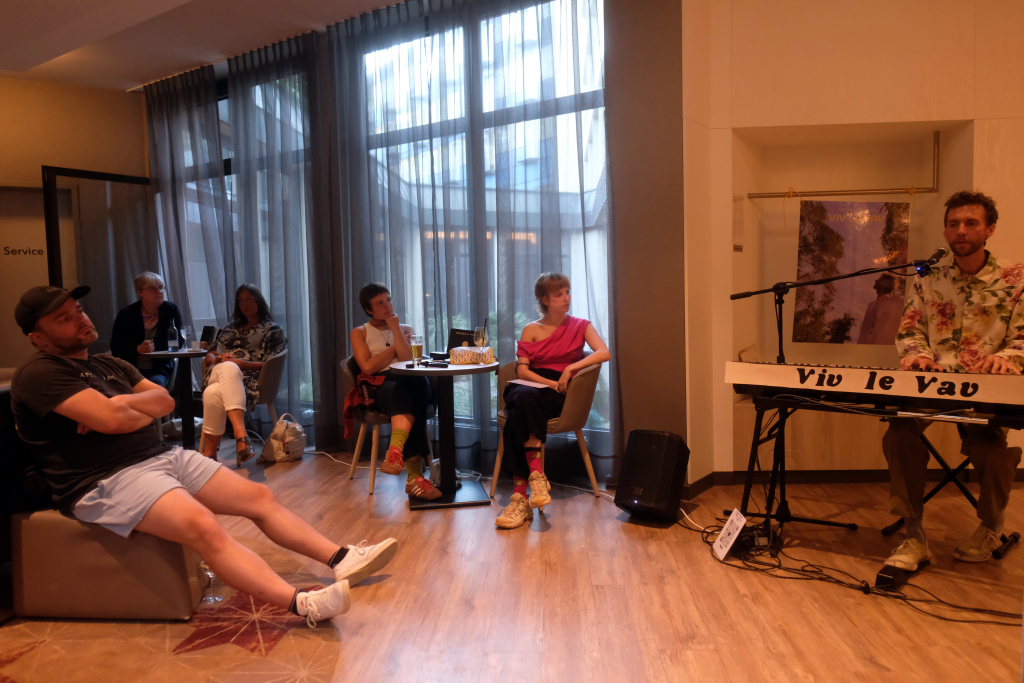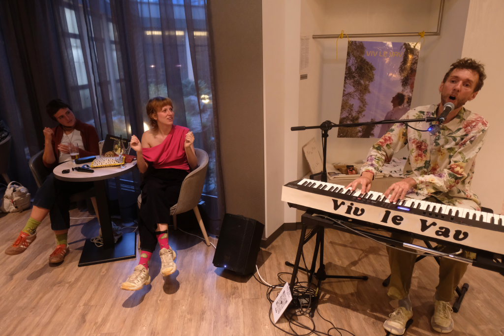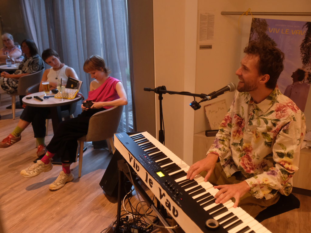 Nach einigen Besuchen entschied er sich 2017 spontan, nach Berlin, genauer gesagt in die Nähe von Weißensee im Osten der Stadt, zu ziehen. Etwa in dieser Zeit startete er sein Musikprojekt „Viv le Vav“ das er auch zu seinem Künstlernamen machte. Es ist die Kurzform für Vivian Le Vavasseur, dem Mädchenname seiner Mutter, verriet er den Konzertbesuchern an diesem Abend.