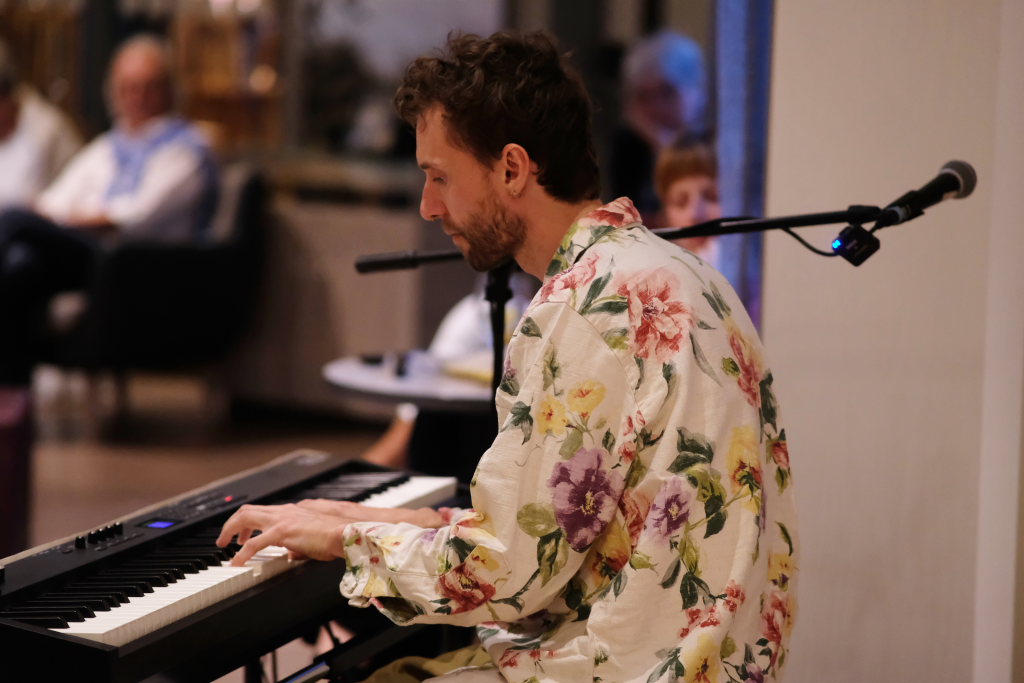 Kein Wunder war es daher, dass er auch ein Stück dieses als einer der wichtigsten Pioniere der sogenannten „Minimal music“ geltenden Komponisten im Programm hatte. Die Etüde, die er von Glass spielte, hatte aufgrund seiner repetitiven Melodienfolgen eine sehr entspannende Wirkung auf das Publikum. Es war neben einem Bob-Dylan-Stück das einzige, das nicht aus seiner Feder stammte. Zu seinem Programm gehören auch Songs, die er auf Jérriais geschrieben hat, dem normannischen Dialekt, der ursprünglich auf Jersey gesprochen wurde, bevor er von der englischen Sprache verdrängt wurde. Er habe auch versucht, die Sprache, die nur noch wenige Jerseyaner sprechen, zu lernen.