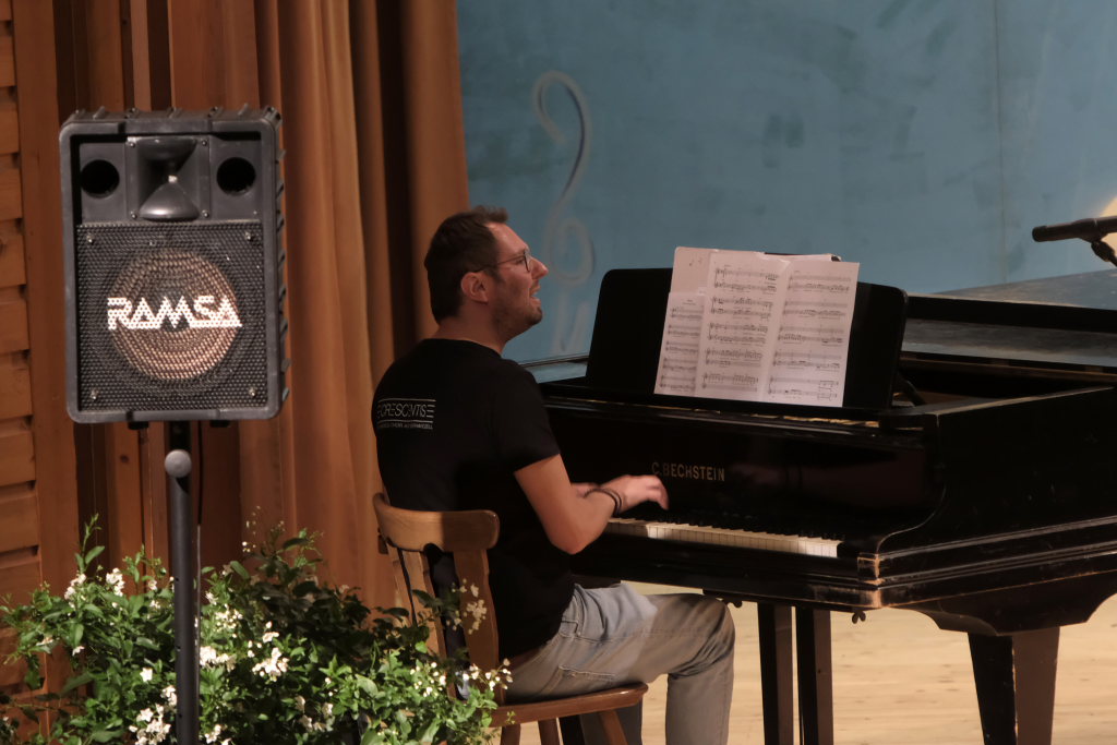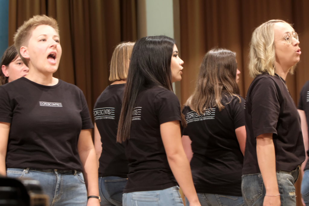 Für den zweiten Teil hatten die Mädels von Crescentis das Lied von Johannes Oerding „Heimat“, arrangiert von Caroline Mast, ausgesucht. Gefolgt von Tornero (1000 Träume), das im Saal für helle Begeisterung sorgte. Bei der vielumjubelten Zugabe „Bed of roses“ von Bon Jovi wurde Johannes Tress als Leadsänger zum Star, der Chor trat gesanglich eher in den Hintergrund.