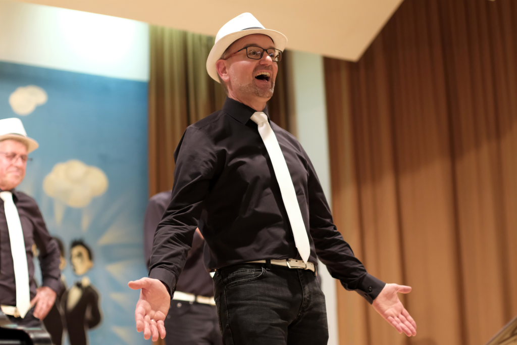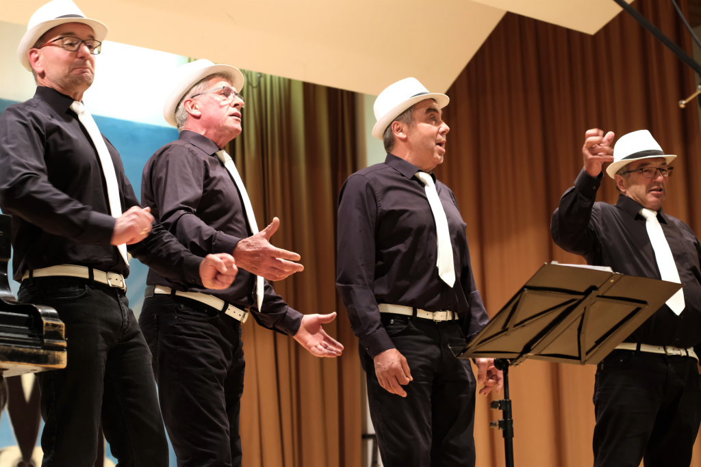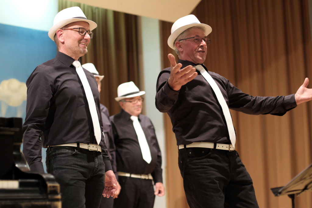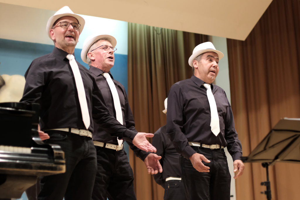 Die Schmalegger Hofsänger stellten sich mit dem Stück „Hallo Mitanand“ nochmals persönlich vor. Danach ließen die Sänger den beliebten Schlager „Veronika, der Lenz ist da“  folgen, der erstmals 1930 von den Comedian Harmonists auf die Bühne gebracht worden war.