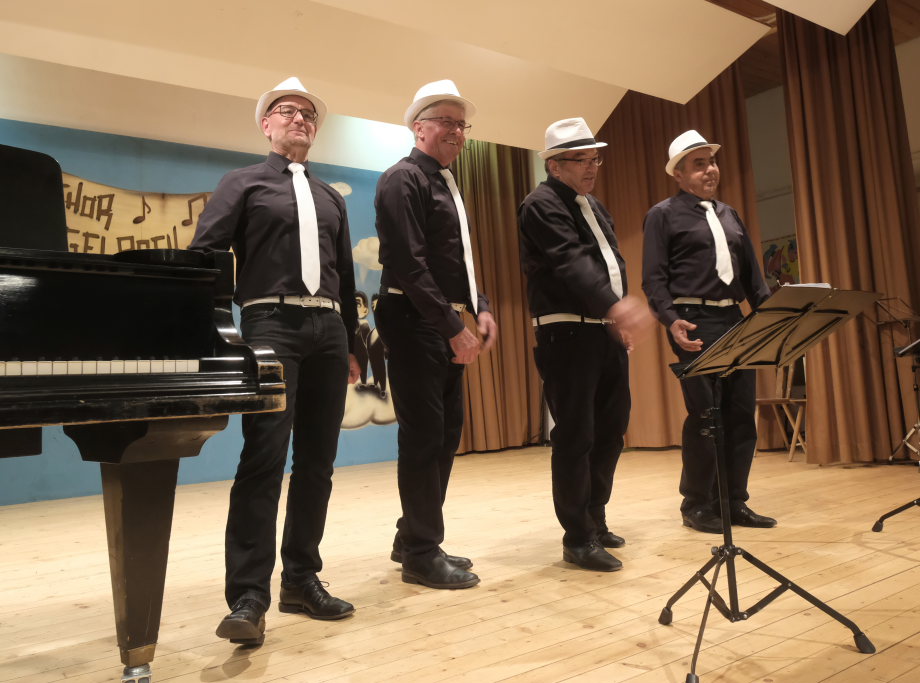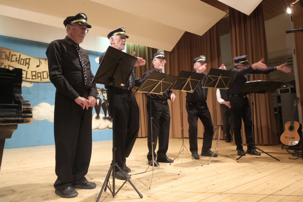 Schmuck sahen die Herren von G.I.S. in ihren Fliegeruniformen aus, als sie als „angegraute“ Flugkapitäne den Fliegermarsch intonierten und – nachdem sie die Fliegermütze an den Nagel gehängt hatten – auch mit dem Klostertaler Hallelujah die Stimmung weiter anheizten.
