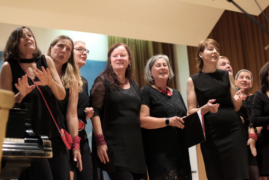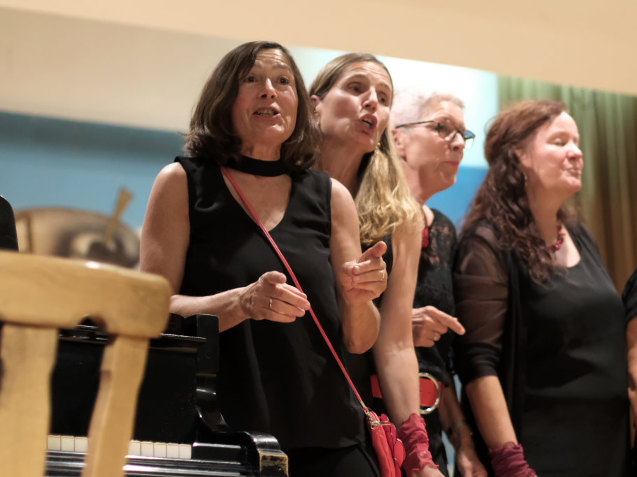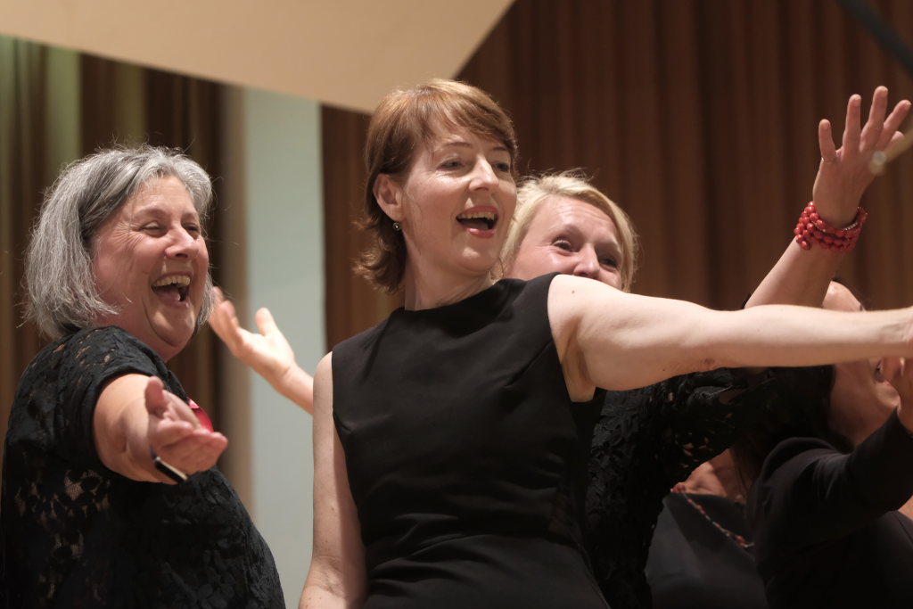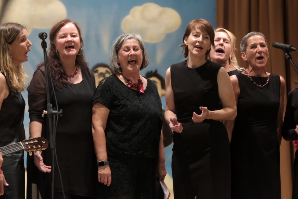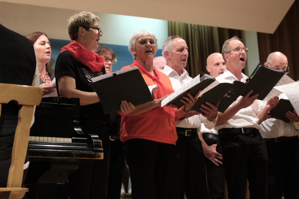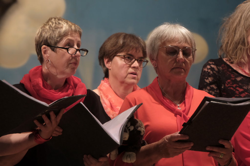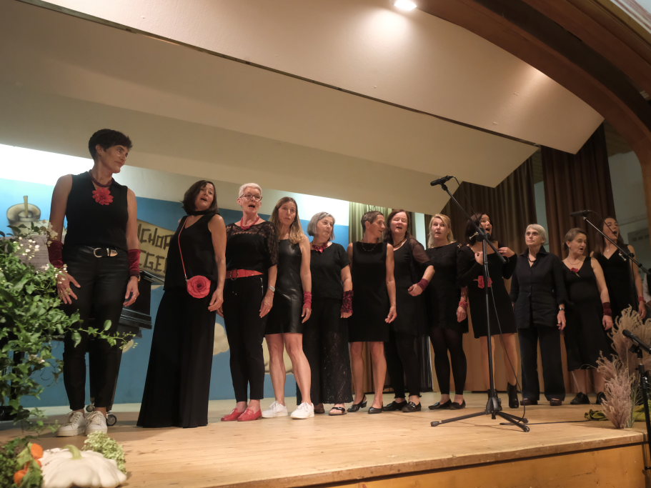 Sie starteten mit dem wunderbaren Spiritual „Bring me little water, Silvy“. Als zweites boten sie dem Publikum mit dem Lied von Annette Humpe und Max Raabe „Für Frauen ist das kein Problem“ eine Hommage an die Stärke der Frau. Einen durchaus ernsten Hintergrund hat das Lied „Bella Ciao“, das sie als Zugabe sangen.