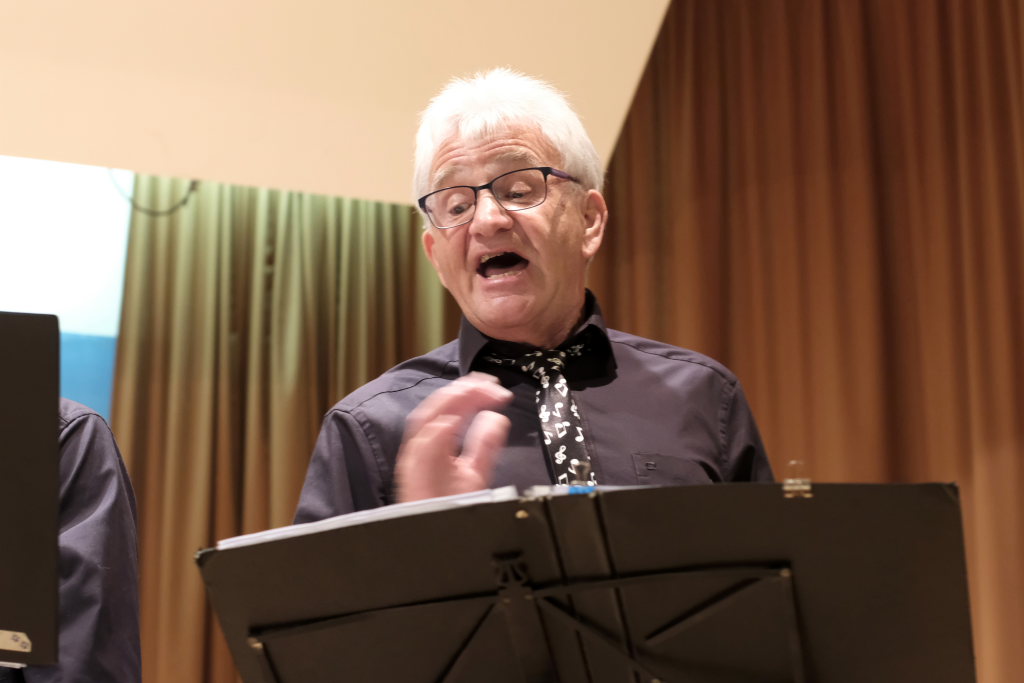 Bereits beim ersten Stück des Kirchenchores unter der Leitung von Günter Musch, dem Seemannslied „The Wellerman“, sprang der Funke aufs Publikum über. Dass Musch und seine Sängerinnen und Sänger den Text „Kirchenchor-like“ angepasst hatten, barg zusätzliches Stimmungspotential. Und auch das zweite Lied des Kirchenchores „Die kleine Kneipe“ forderte geradezu zum Mitsingen auf und war das Lied, das beim traditionellen großen Finale alle Akteure gemeinsam mit dem Publikum sangen. Und es spiegelte laut Tine Wespel, der Vorständin des Kirchenchores, die gemeinsam mit Günter Musch wieder souverän durch das Programm führte, die Situation des Kirchenchores wider, die sie allwöchentlich nach der Probe in der „Rose erleben. „Danke an Gabi und Karl, dass ihr das in unserem kleinen Dorf noch möglich macht.“