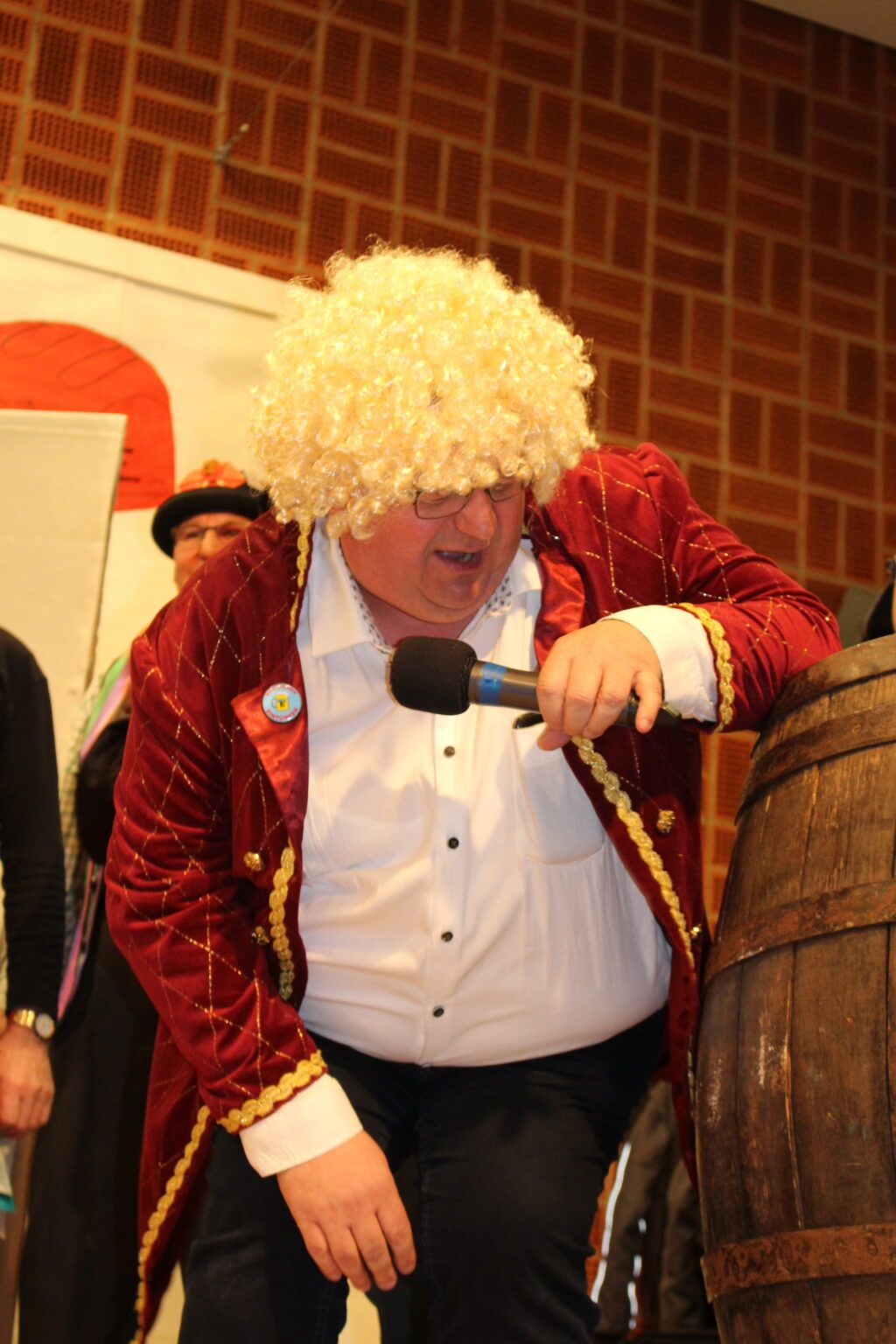 Der karnevalistische Feuerzauber setzte daraufhin Conny Segmüller in Reimform fort. Sie war auf der Suche nach warmer Kleidung in ein Affenkonstüm und festgesteckt in der Dachrinne ihres Hauses in die Fronleichnamsprozession geraten und schließlich mit einer vom Mesner abgefeuerten Beruhigungsspritze in einen seligen Schlaf versetzt worden.