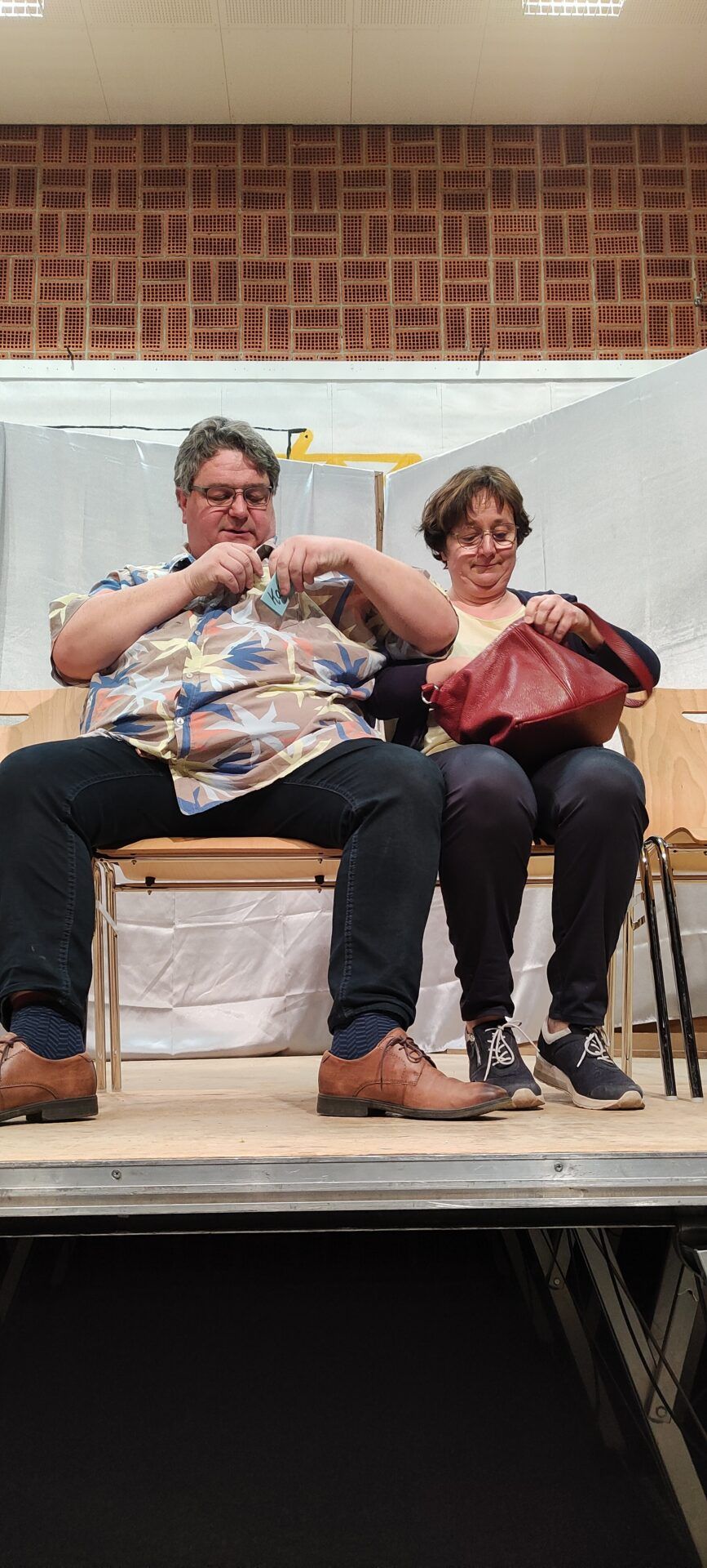 Dass nicht jeder Feuerwerkskörper mit Krach verbunden sein muss, belegte der zweite Programmpunkt, als Norbert Rogg und Berthold Ruf mit ihren Frauen, gespielt von Margit Keßler und Theresia Weber, in einem stummen Sketch zwei ziemlich unterschiedliche Paare auf einer Bank im Freien mimten.