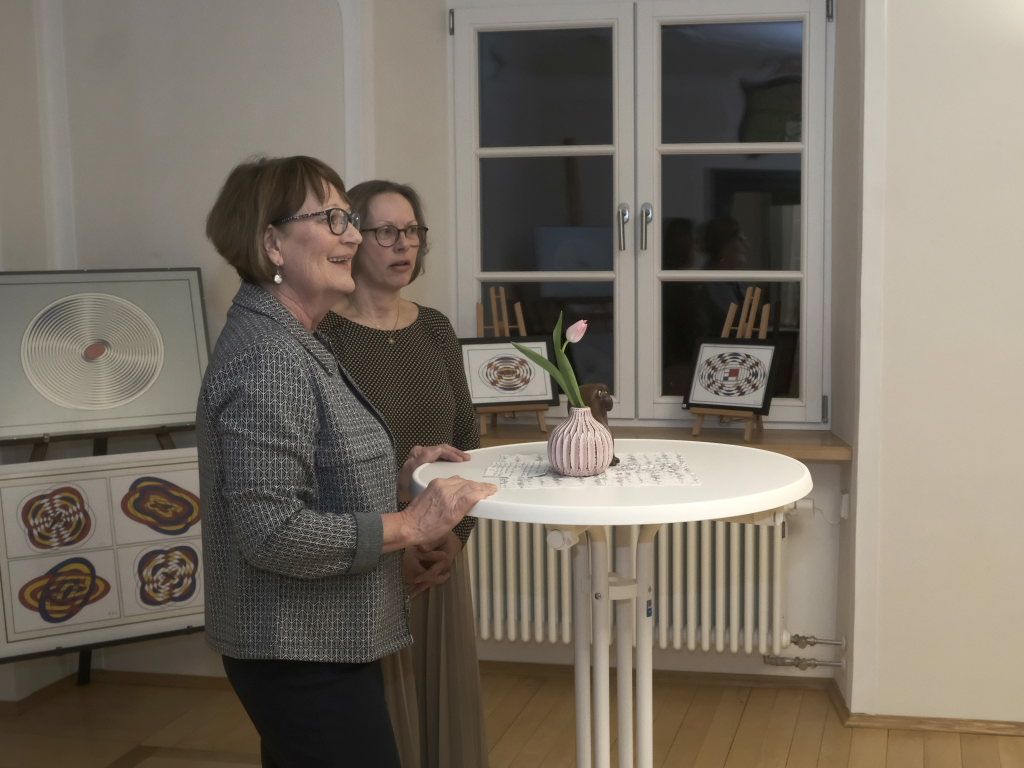 Zur Vernissage der 249. Ausstellung der Städtischen Galerie, in die der Künstler selbst einführte, kam neben Bürgermeisterin Alexandra Scherer auch Rosemarie Stäbler, die 26 Jahre die Organisation der Galerie verantwortet hatte.