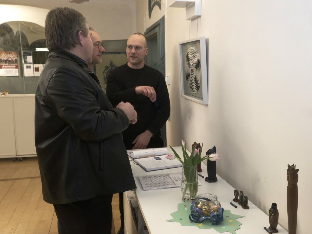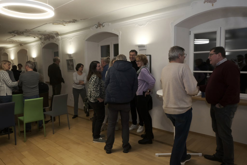 Die Bürgermeisterin als Hausherrin freute sich in ihrer Begrüßung, dass zu dieser „Ausstellung der Premieren“ so viele Gäste (weit über 50) gekommen waren. Denn es war nicht nur die erste Ausstellung des Organisations-Duos, auch für den Künstler selbst war es das erste Mal, dass er seine Werke einer größeren Öffentlichkeit präsentierte. Scherer betonte auch, dass die Galerie gerne einheimischen, regionalen und lokalen Künstlern eine Bühne biete.