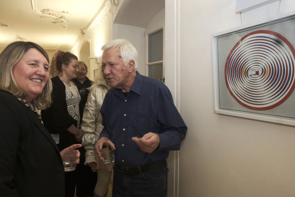 Zur Vernissage der 249. Ausstellung der Städtischen Galerie, in die der Künstler selbst einführte, kam neben Bürgermeisterin Alexandra Scherer auch Rosemarie Stäbler, die 26 Jahre die Organisation der Galerie verantwortet hatte.
