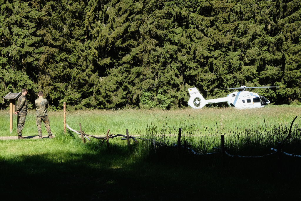 Die Vorgeschichte: Am 4. April gegen 12.30 Uhr kommen zwei Hubschrauber im Tiefflug über das Gelände des Waldkindergartens mit seinen beiden Bauwagen. Einer davon lässt dabei im Schwebeflug einen großen Korb herab und holt ihn danach wieder ein. Nach zehn Minuten war der Spuk wieder vorbei, zurück blieben verängstigte Kinder und verärgerte Erwachsene. Auf sofortige Nachfrage einer Mutter bei der Bundeswehr wurde bestätigt, dass sich zu diesem Zeitraum zwei Hubschrauber in dem besagten Gebiet auf einem Übungs- und Trainingsflug befanden.