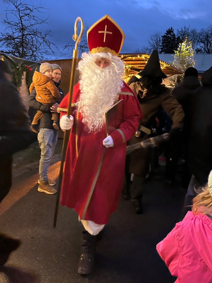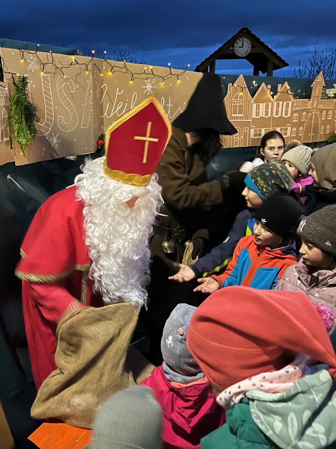 Nicht fehlen durfte auf dem Markt natürlich der Besuch des heiligen Nikolaus, der mit seinem friedlichen Knecht Ruprecht viele Geschenke aus dem prallgefüllten Sack an die Kinder verteilte.