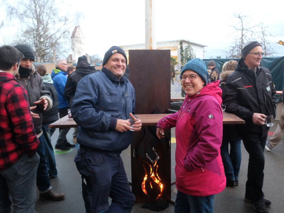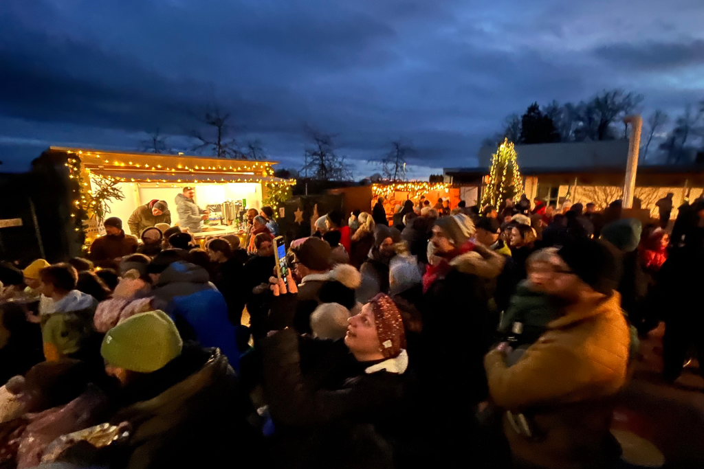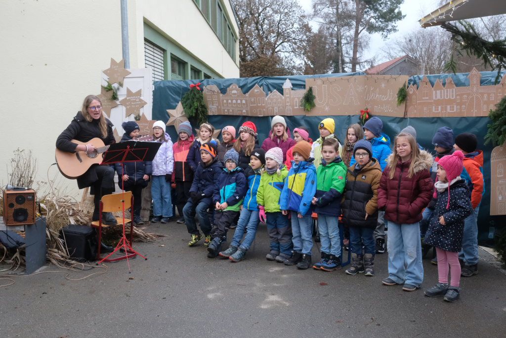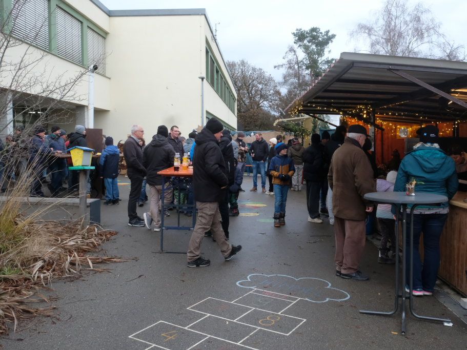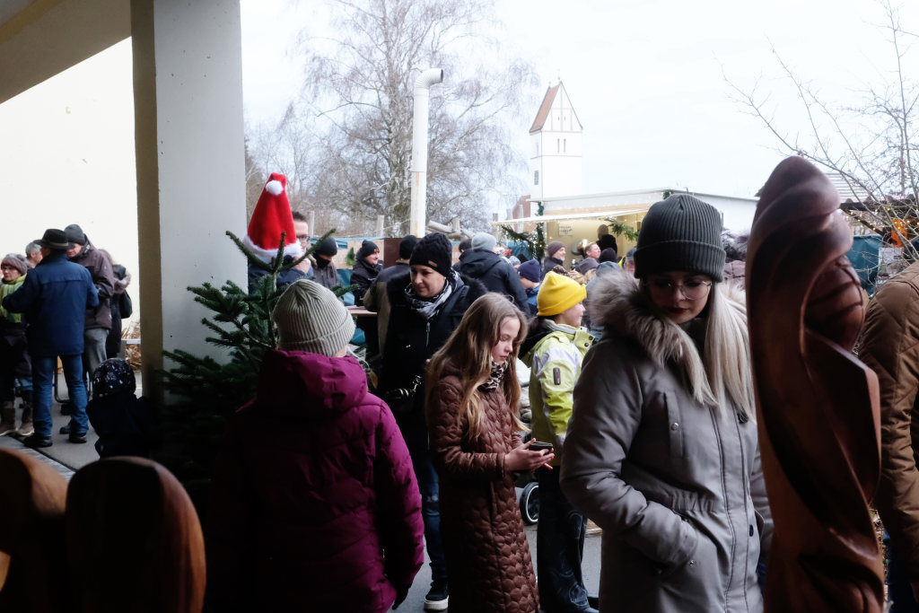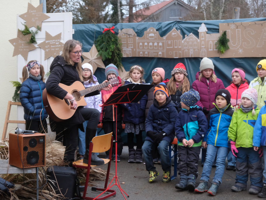 Feierlich eröffnet wurde der Markt vom Schulchor unter der Leitung von Schulleiterin Martina Schmid-Pfeifer, die mit weihnachtlichen Weisen die Herzen der Besucher erwärmten. Nicht nur die Herzen, sondern auch die Mägen derselben erwärmten die Essenstände. Eine ganz besondere Spezialität neben den üblichen Roten am Stand der Fußballler gab es am Stand des Musikvereines Eggmannsried: Die Hütte, ausgestattet mit großen Pizzaöfen, bot den hungrigen Gästen wohlschmeckende schwäbische Dinnete und war fest in der Hand der Familien Gütler.