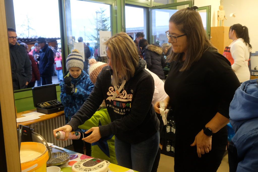 Für Kaffee, selbstgebackenen Kuchen und frische Waffeln sorgten die Eltern der Grundschulkinder, während die Gäste sich im warmen Foyer der Schule unterhalten konnten.