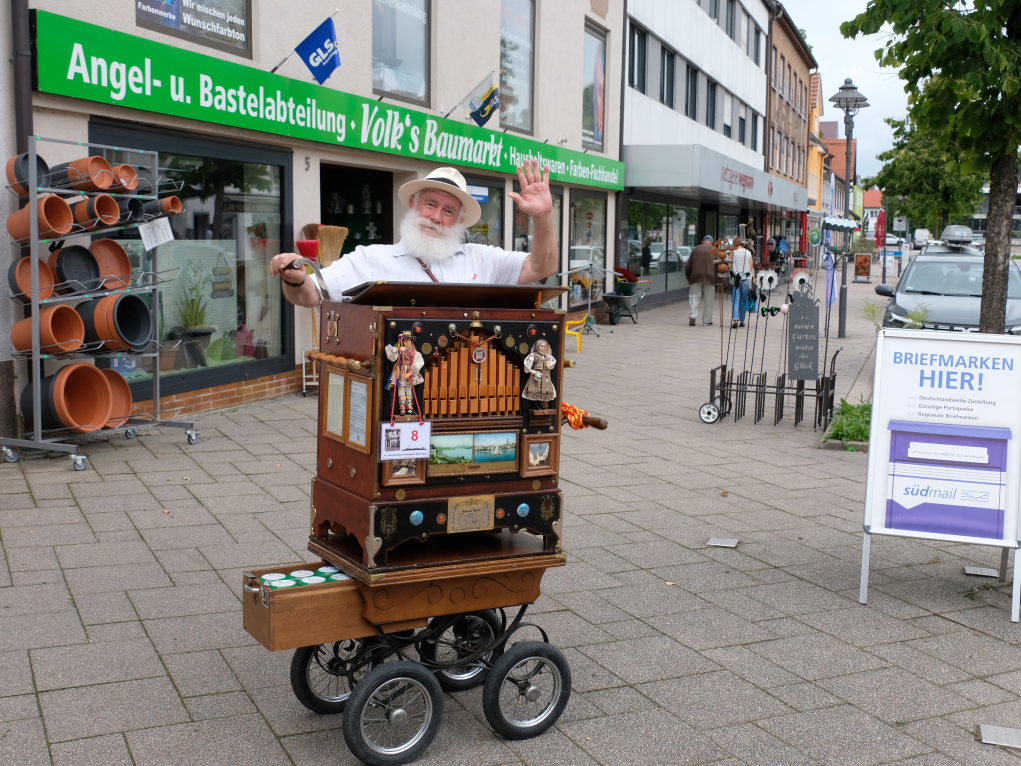 Bad Wurzach – Am Donnerstag, 8. August, gab es eine Vielfalt an Musik in Bad Wurzach. Denn zwischen 9.30 Uhr und 13.00 Uhr erklangen an verschiedenen Standorten vom Baumarkt Volk bis zum Klosterplatz in der Innenstadt musikalische Häppchen von Drehorgelspielern aus ganz Oberschwaben und der Schweiz.