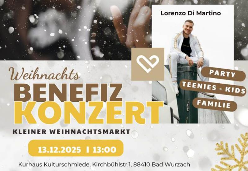 Bad Wurzach – Am Samstag, den 13. Dezember, lädt die AGAPE Christliche Bekenntnisschule zu einem besonderen Benefizkonzert ein: Der professionelle Rapper und Sänger Lorenzo Di Martino tritt um 13.00 Uhr in der Kurhaus-Kulturschmiede in Bad Wurzach auf (Einlass ab 12.15 Uhr). Die Veranstaltung richtet sich an Jugendliche und Familien mit Kindern und verspricht einen außergewöhnlichen Nachmittag mit Musik, die bewegt und inspiriert. Auch die Schüler beteiligen sich am Programm mit einem Tanz un…