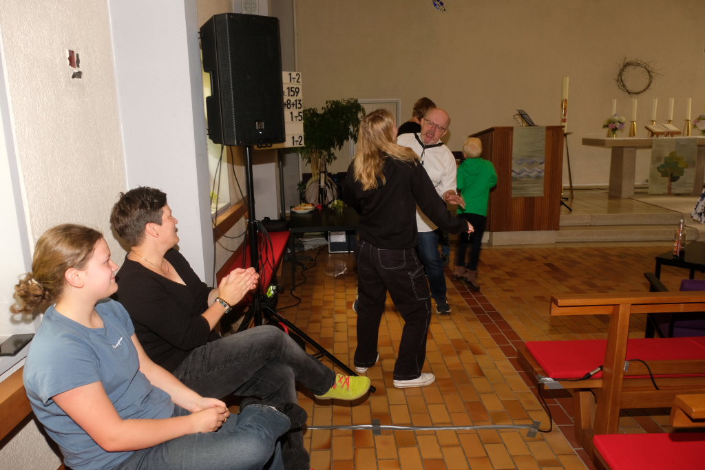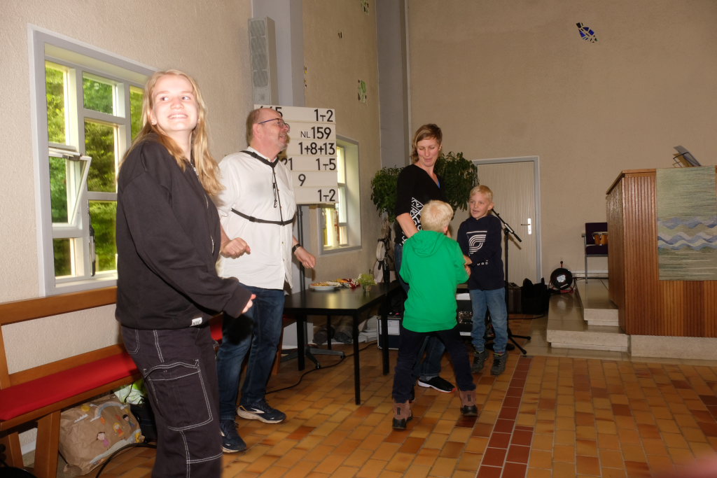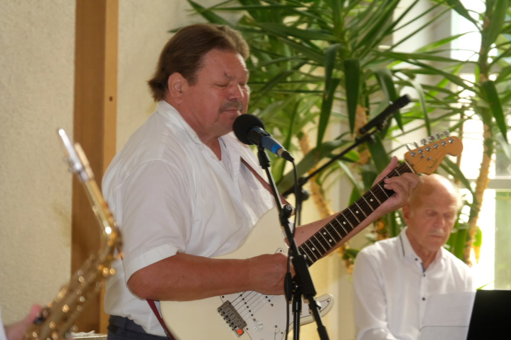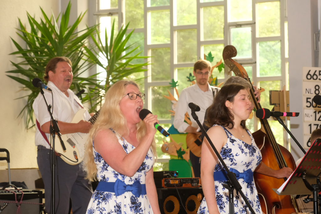 Nachdem der größte Hunger der Gäste mit Steak, Würstchen, Pommes und leckeren Salaten gestillt war und auch die Kaffee- und Kuchentheke eröffnet hatte, ging es in der Kirche für die Erwachsenen mit der Rock´n´Roll Band Marsh Marigold und alten Rock´n´Roll-Klassikern noch einmal richtig rund.