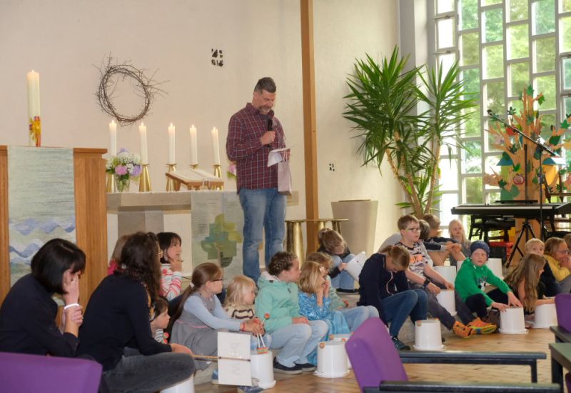 Während des Festgottesdienstes in der Kirche, den der Posaunenchor musikalisch gestaltete, probten nebenan die Kinder der Kinderkirche für ihren großen Auftritt zum Abschluss des Gottesdienstes, für den sie dann auch viel Applaus ernteten. Kirchenpfleger Oliver Löffler stellte zwei Projekte des Wurzacher Beitrags vor. Da wäre zum einen die Beleuchtung des Altarraumes: Viele der Glühbirnen sind ausgefallen und mit einer Leiter nicht erreichbar. Damit zukünftig der Posaunenchor wieder vorne spielen kann, sollen die Lampen an den Säulen angebracht werden. Auch soll das große seitliche Glasfenster eine Verdunkelung bekommen, damit bei das Beamerbild – etwa bei Bildmeditationen besser – zu erkennen ist.
