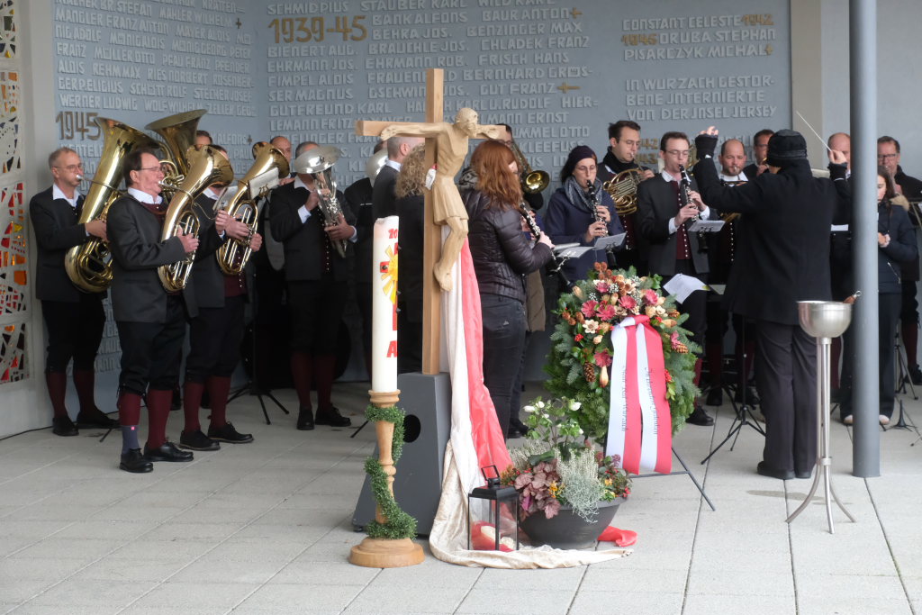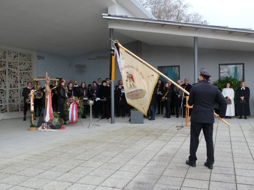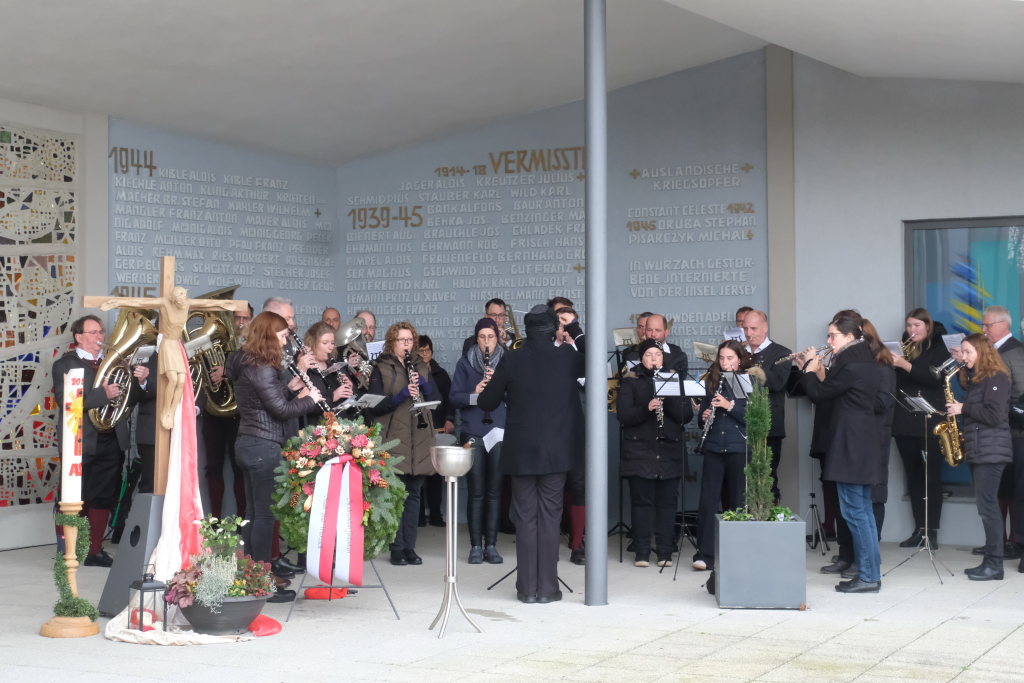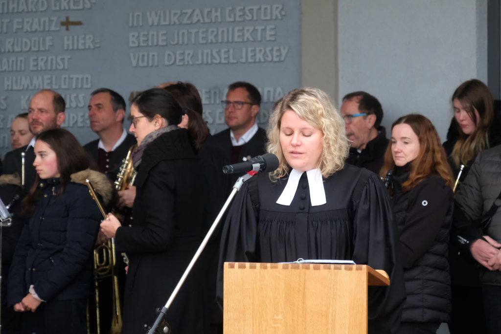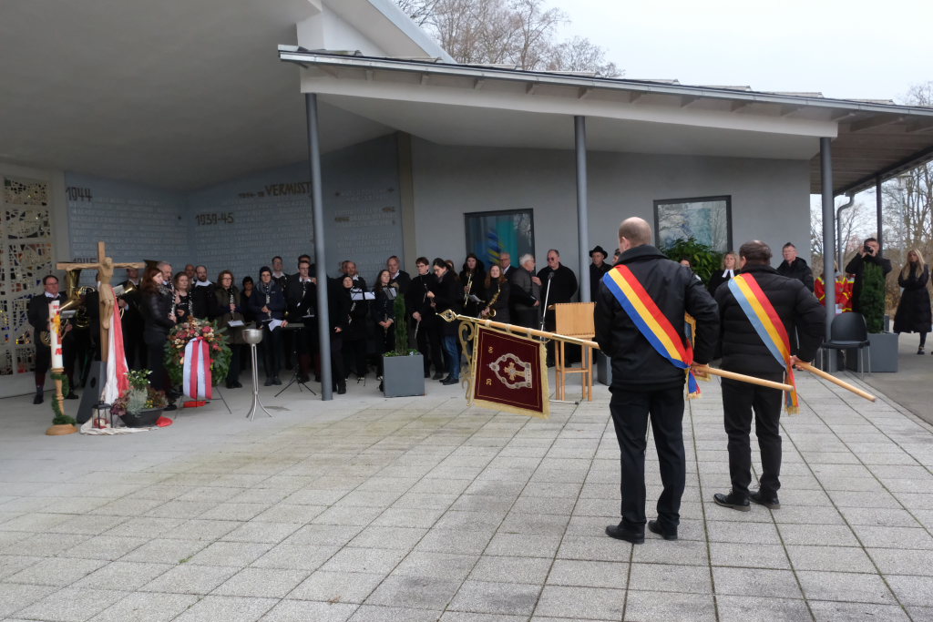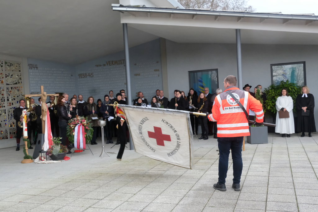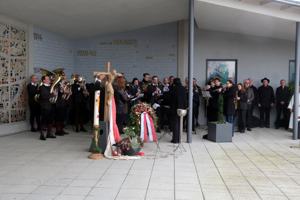 Bad Wurzach – Alljährlich wird in ganz Deutschland und selbstverständlich auch in Bad Wurzach am Volkstrauertag der Opfer von Kriegen und Gewalt gedacht. Bürgermeisterin Alexandra Scherer tat dies in diesem Jahr gemeinsam mit drei Schülerinnen der 9. Klasse der Realschule, Pfarrerin Silke Kuczera von der evangelischen und Pastoralreferentin Anna Katharina Merk von der katholischen Kirchengemeinde sowie der Stadtkapelle und dem Liederkranz Chorioso, welche der Gedenkfeier am vergangenen Sonntag (16.11.) den würdevollen musikalischen Rahmen gaben.