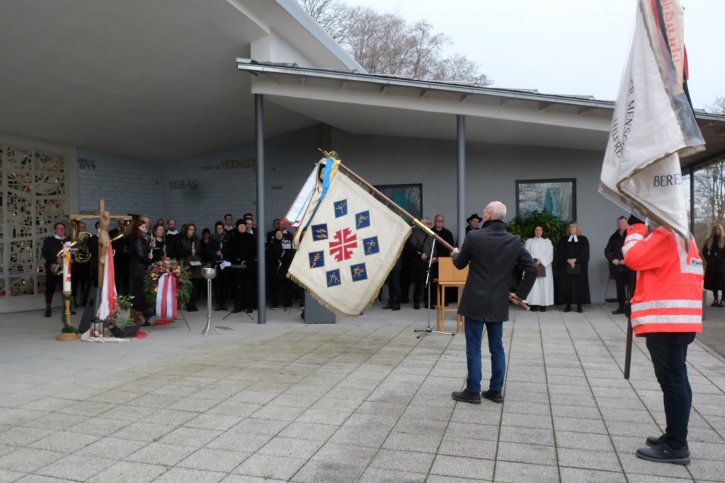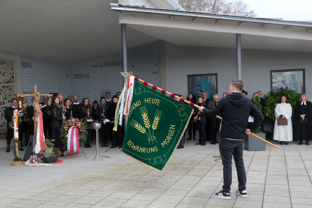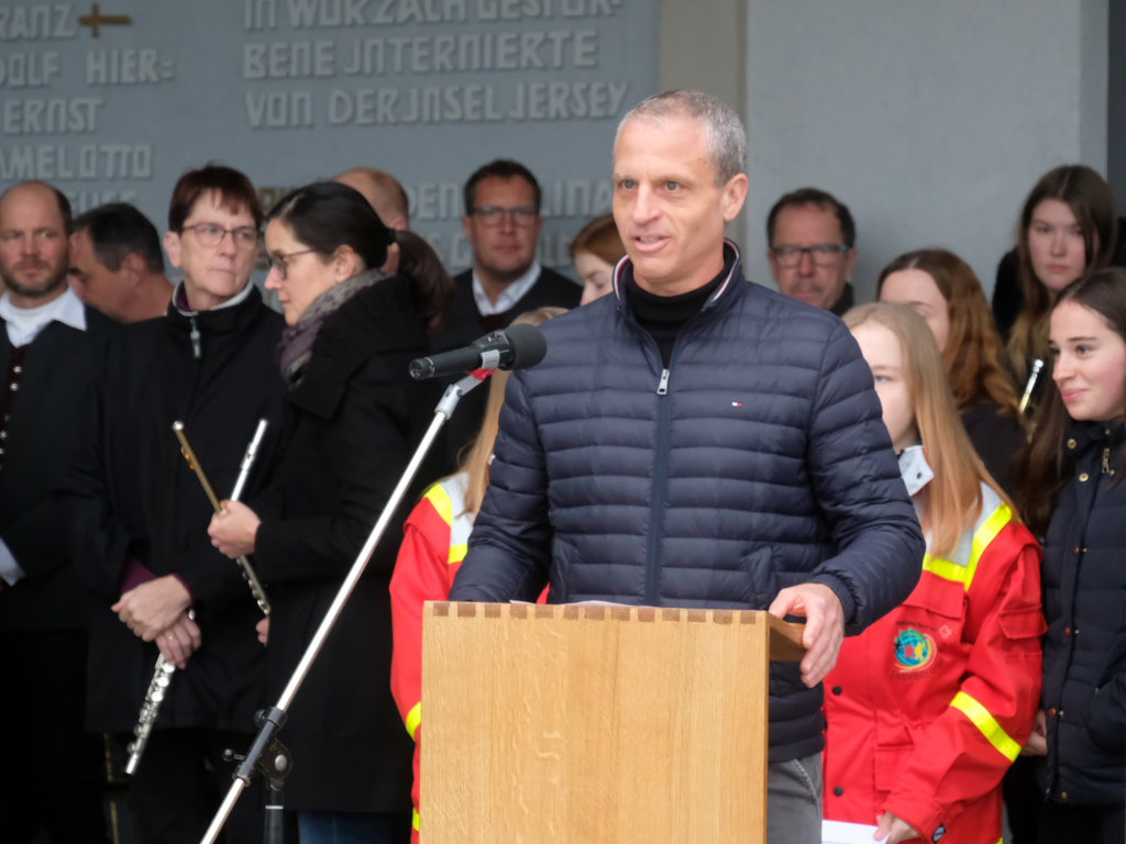 Bad Wurzach halte die Erinnerung daran durch die Städtepartnerschaften hoch. Der Besuch einer großen Delegation mit Zeitzeugen aus Jersey habe 80 Jahre nach der Befreiung des Schlosses alle Beteiligten tief berührt. Die diesjährige Erinnerung an das Kriegsende falle in eine Zeit, in der in Europa, aber auch im Nahen Osten wieder Kriege stattfinden, aber auch die Demokratie – auch in Deutschland – von innen und von außen angegriffen wird. Daher müssten Fragen von großem Ernst vor diesem geschichtlichen Hintergrund beantwortet werden: „Stehen wir ein für die Demokratie, für Menschenwürde als leitendes Prinzip aller Ordnung und die gleiche Freiheit aller?“ Der diesjährige Volkstrauertag sei wieder einmal Anlass und Auftrag , uns für eine friedliche Gegenwart und Zukunft einzusetzen. „Mit Ihrer Teilnahme an der heutigen Gedenkveranstaltung setzen Sie ein sichtbares Zeichen für Frieden, gegen Gewalt, weltweit.“