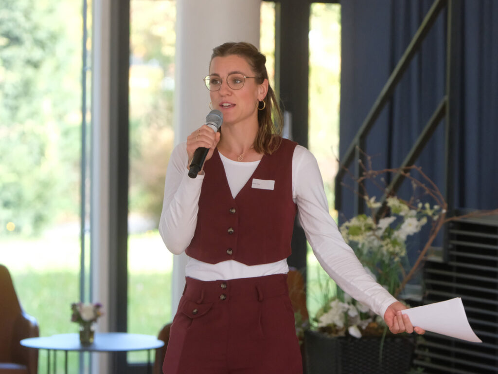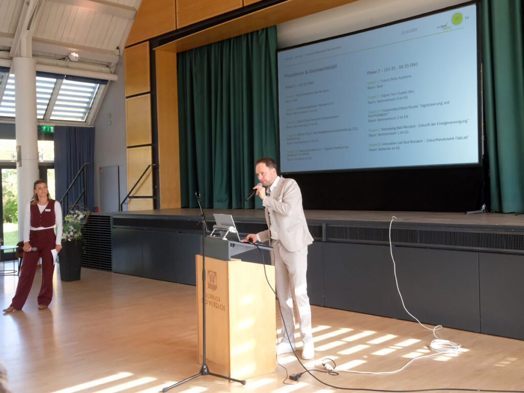 Beim anschließenden Podiumsdialog mit dem Titel „Region in Bewegung – wo drückt der Schuh?“ spielten sich Annika Hiller und Philipp Kahl von der Agentur neuland+ digital die Argumentationsbälle zu Themen wie „Fachkräfte finden, binden, begeistern“ „KI & Digitalisierung – vom Hype zur Praxis“ oder „Globale Krisen, lokale Antworten – Wie der Mittelstand resilient bleibt“, zu.