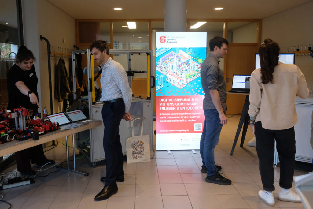 Nach dem Ankommen, einem kleinen Rundgang durch die im Foyer aufgebaute Mini-Messe des Mittelstand Digitalzentrums Augsburg, begrüßte Bürgermeisterin Alexandra Scherer die rund 50 Unternehmer und Vertreter von Institutionen. Den Einstieg in die „Tagesordnung“ erfolgte durch den Impulsvortrag durch Dr. Roland Scherer, Dozent an den Universitäten St. Gallen und Konstanz für Regionalökonomie, mit dem Titel „Zukunftsperspektiven für den Wirtschaftsraum Bodensee Oberschwaben.
