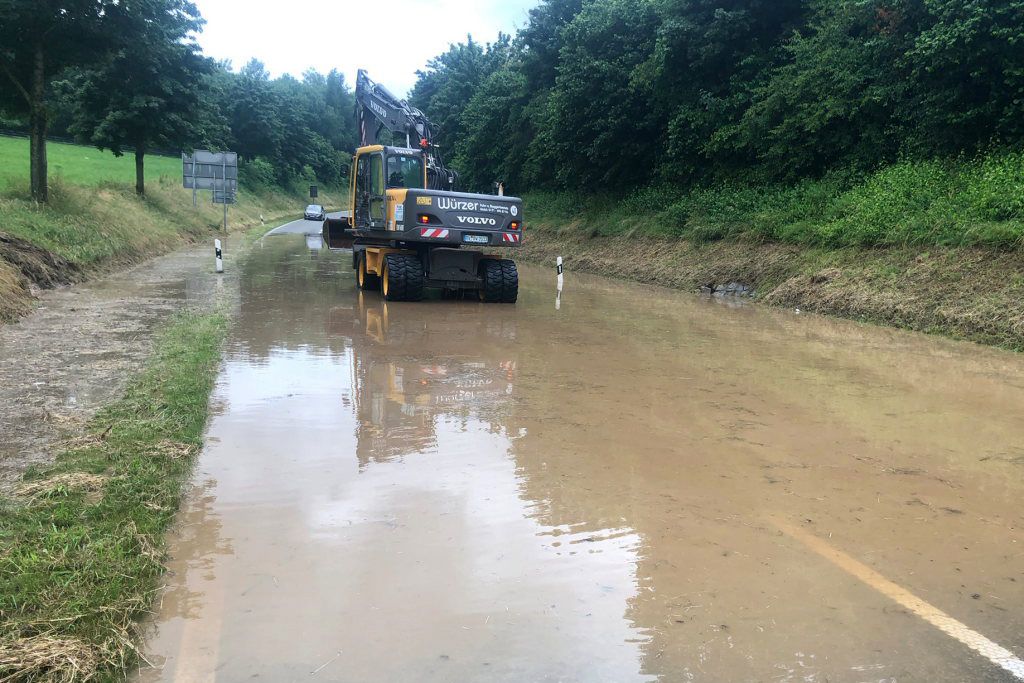 Wenn Roman Würzer an die beiden Sommerhochwasser denkt, wird ihm heute noch mulmig. Im besonders betroffenen Eggmannsried stand er einmal mit seinem Bagger auf der Straße Richtung Sportplatz und Kirche – unten am Hang stand noch ein Feuerwehrauto. „Als ich spürte, dass der Hang abrutschte und den Bagger und mich als Passagier bergabschob, gab es für mich nur eines: Die Feuerwehrleute zu warnen, ihren Lkw in Sicherheit zu bringen.“  Oder als er mit dem Bagger auf der B465 durchs Ried fuhr und das Wasser fast bis in die Fahrerkabine hineinreichte: „Das waren Situationen die man nicht täglich erleben möchte.“