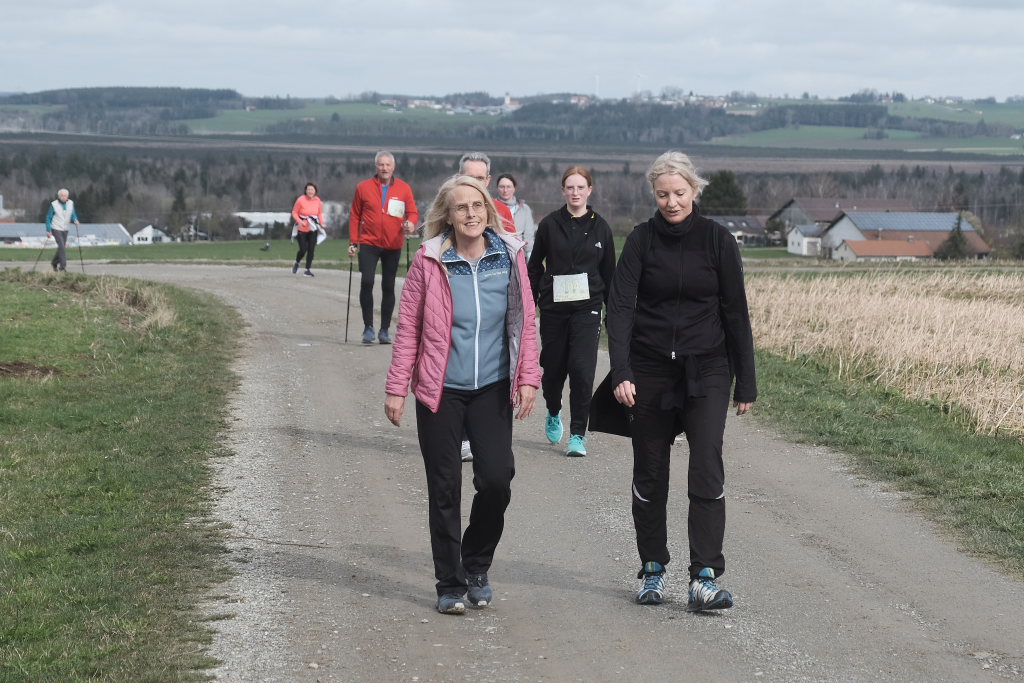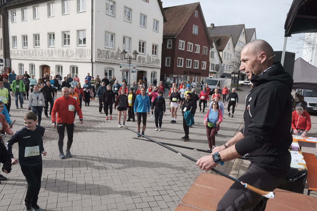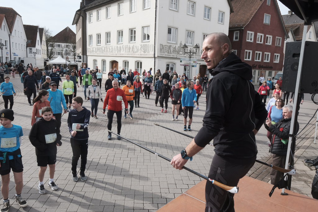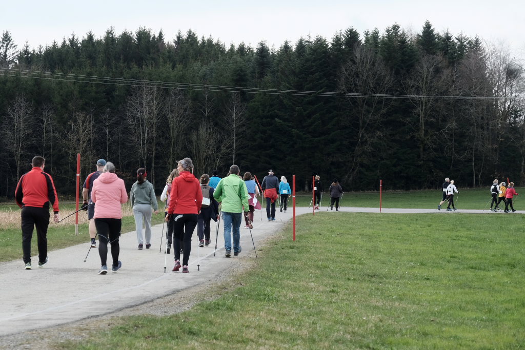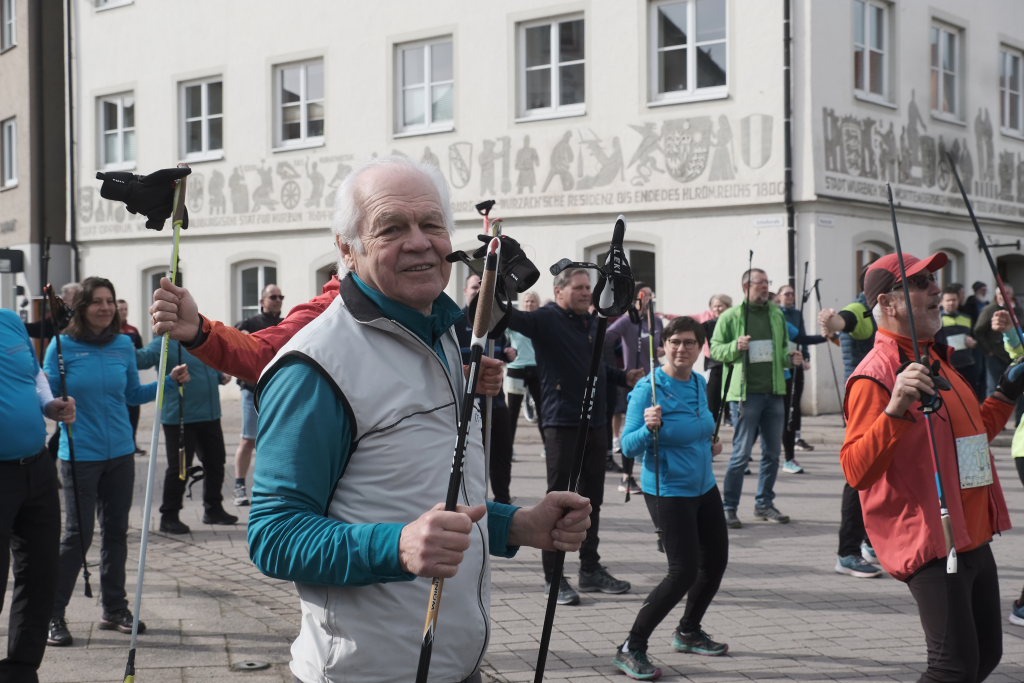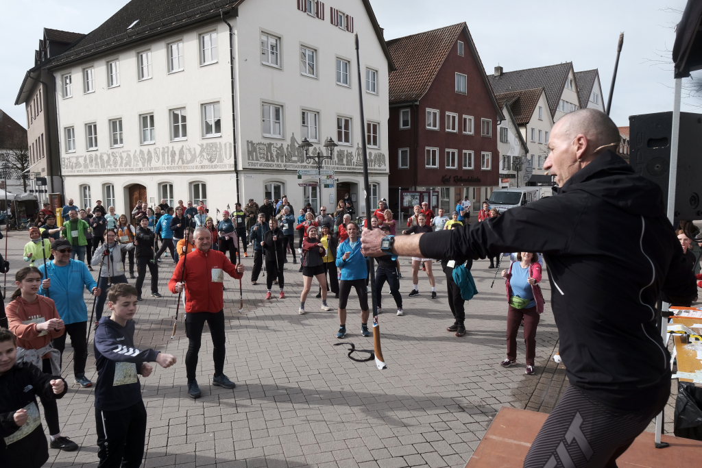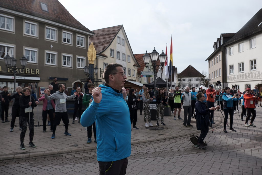 Hermann Rast, der schon immer die beiden Strecken mit 8 bzw. 13 km Länge ausgeschildert hat, hatte gemeinsam mit Sarah Friedrich, die sich um Anmeldung und Startnummernausgabe kümmerte, bei idealem Laufwetter an diesem Sonntagmorgen das Organisationszepter fest in der Hand. Nach der Begrüßung durch die HGV-Vorsitzende Christiane Vincon-Westermayer, sorgte der Nordic-Walking-Weltmeister für ordentlich Bewegung und Spaß bei den Teilnehmern, die sich dann mit gut aufgewärmten Muskeln auf die Strecke machten.