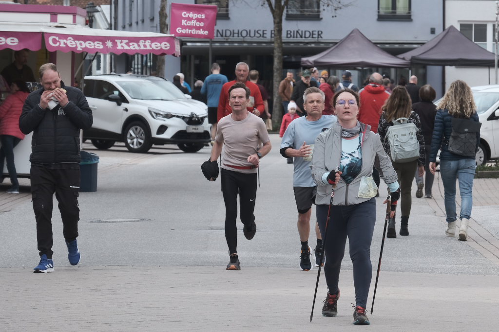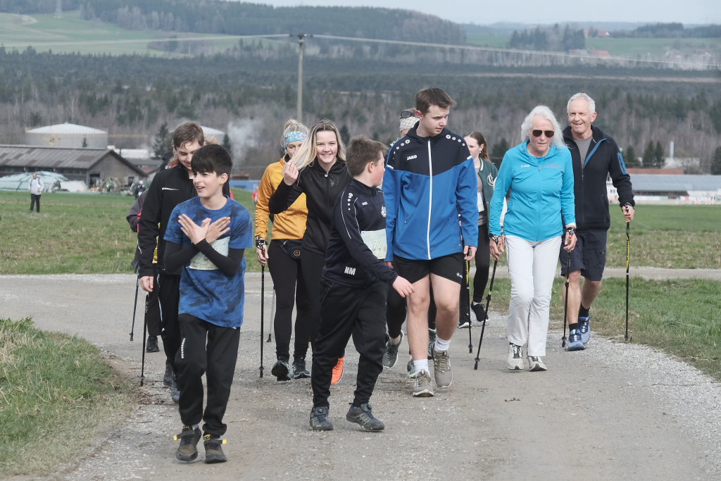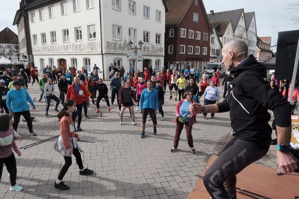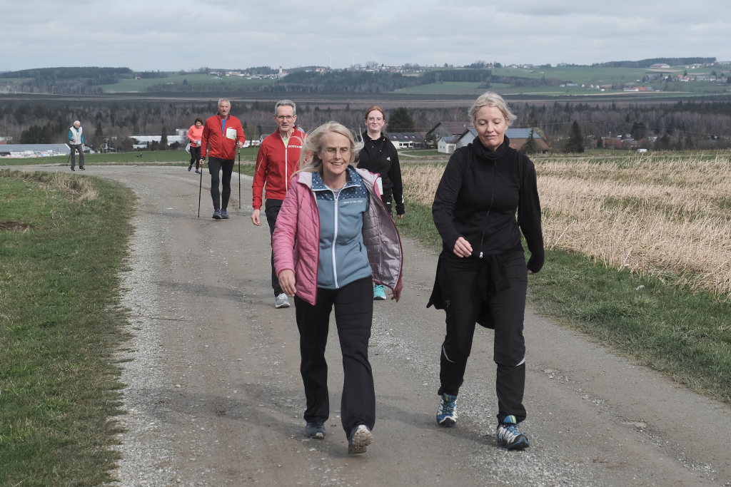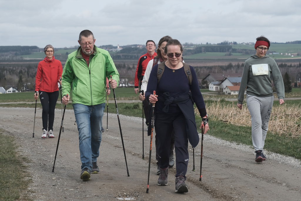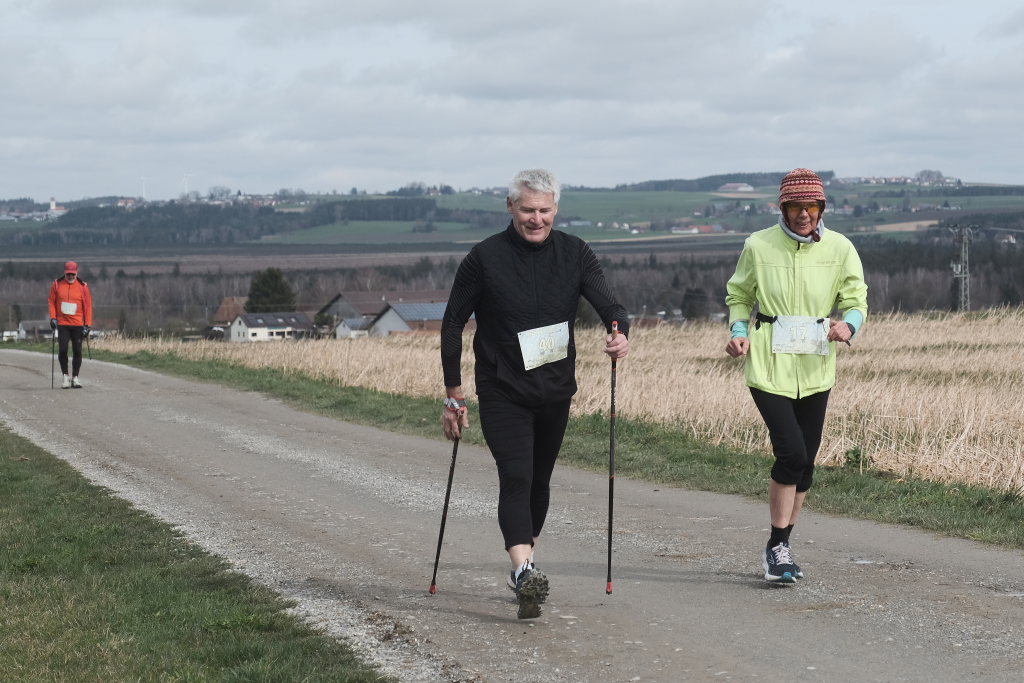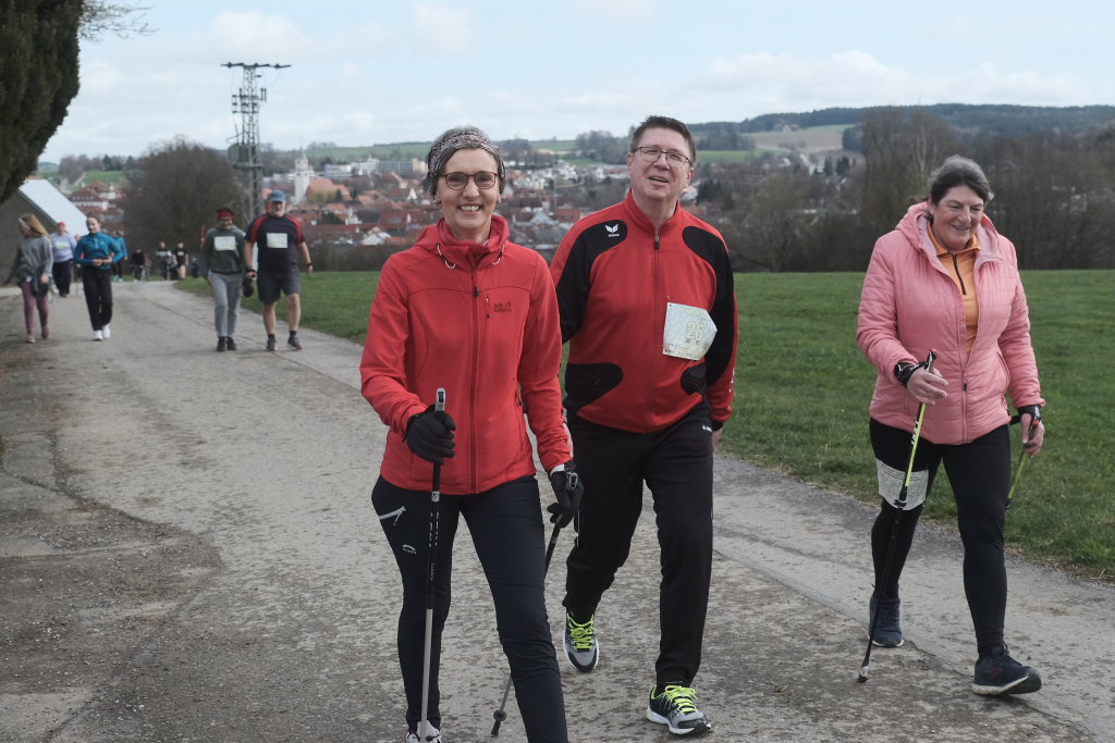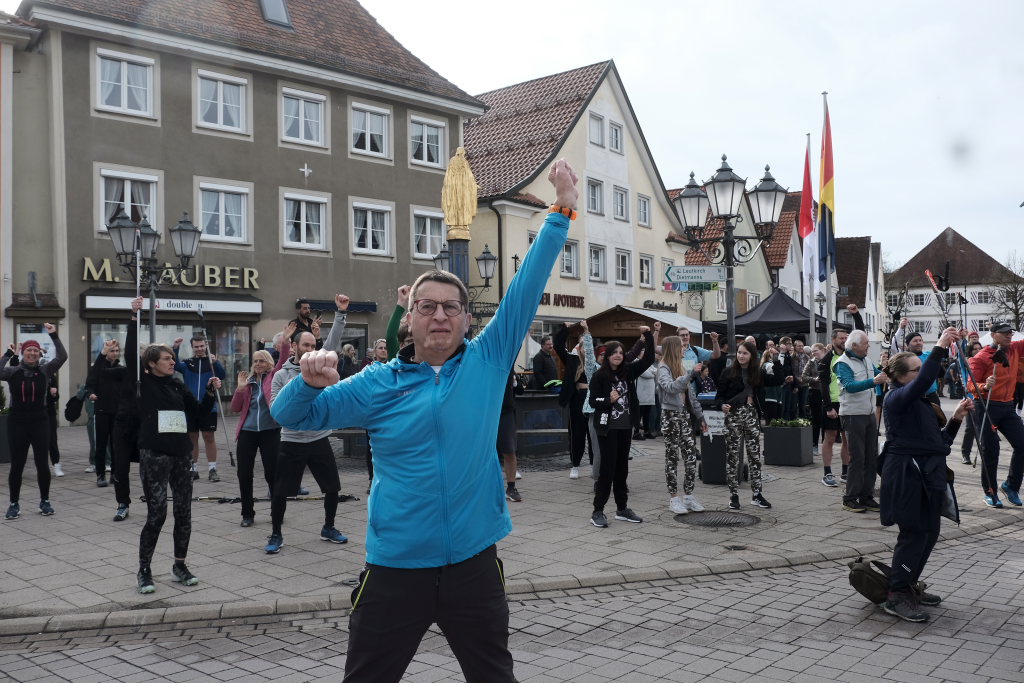 Hermann Rast, der schon immer die beiden Strecken mit 8 bzw. 13 km Länge ausgeschildert hat, hatte gemeinsam mit Sarah Friedrich, die sich um Anmeldung und Startnummernausgabe kümmerte, bei idealem Laufwetter an diesem Sonntagmorgen das Organisationszepter fest in der Hand. Nach der Begrüßung durch die HGV-Vorsitzende Christiane Vincon-Westermayer, sorgte der Nordic-Walking-Weltmeister für ordentlich Bewegung und Spaß bei den Teilnehmern, die sich dann mit gut aufgewärmten Muskeln auf die Strecke machten.