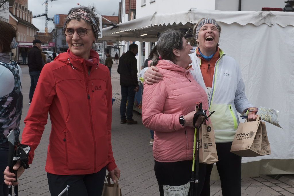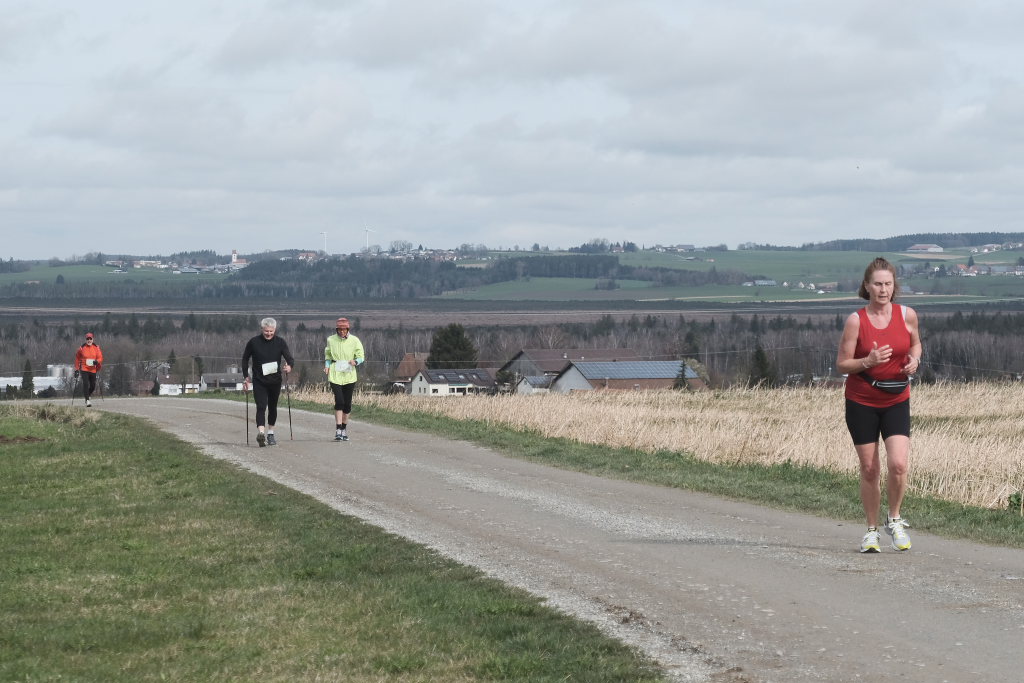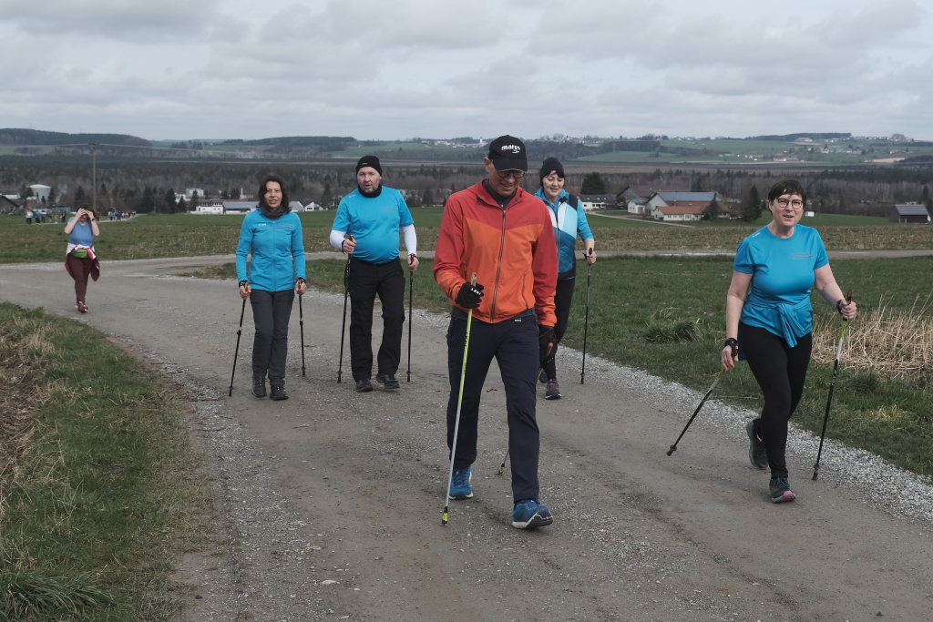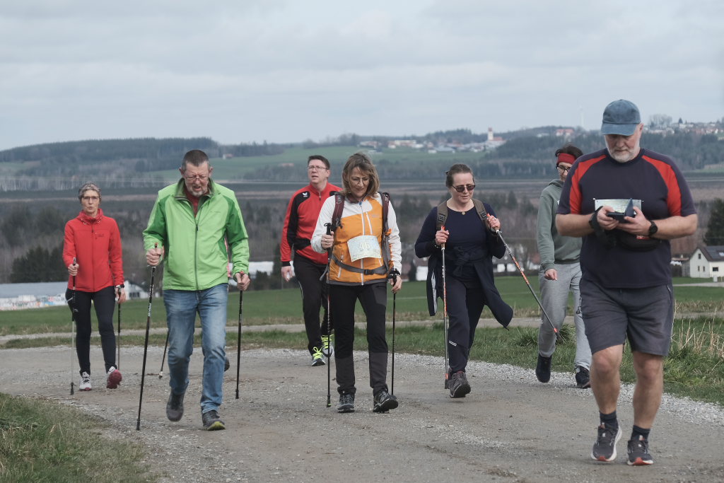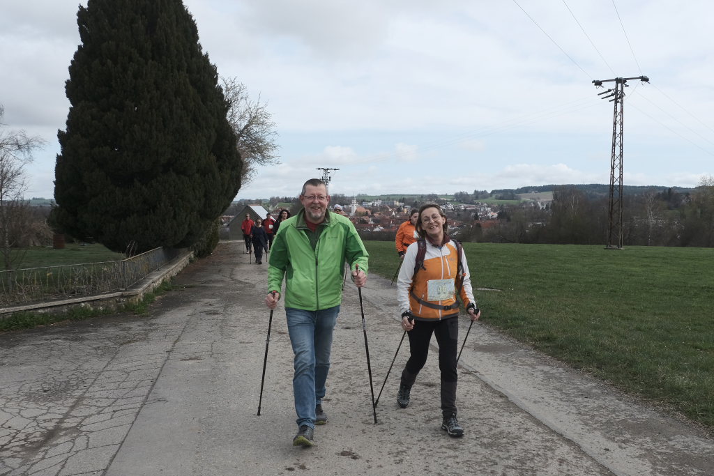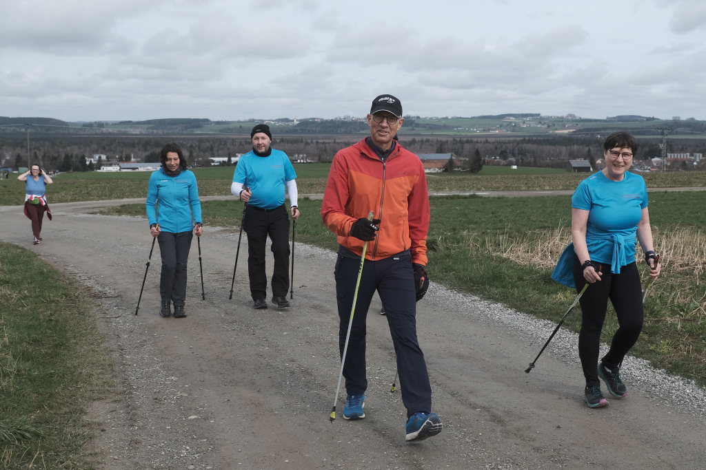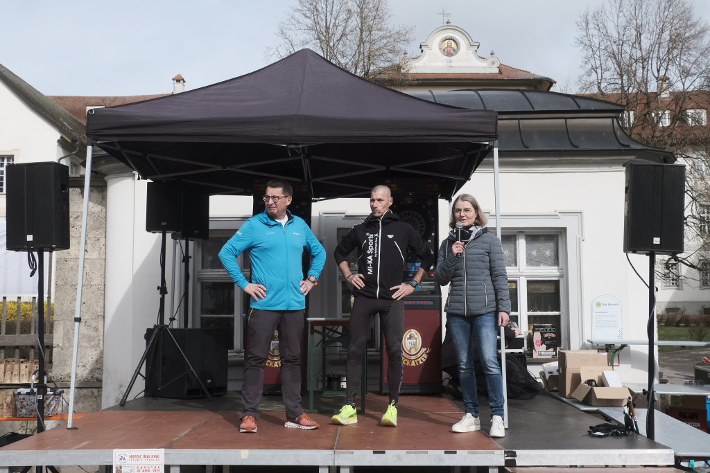 Hermann Rast, der schon immer die beiden Strecken mit 8 bzw. 13 km Länge ausgeschildert hat, hatte gemeinsam mit Sarah Friedrich, die sich um Anmeldung und Startnummernausgabe kümmerte, bei idealem Laufwetter an diesem Sonntagmorgen das Organisationszepter fest in der Hand. Nach der Begrüßung durch die HGV-Vorsitzende Christiane Vincon-Westermayer, sorgte der Nordic-Walking-Weltmeister für ordentlich Bewegung und Spaß bei den Teilnehmern, die sich dann mit gut aufgewärmten Muskeln auf die Strecke machten.