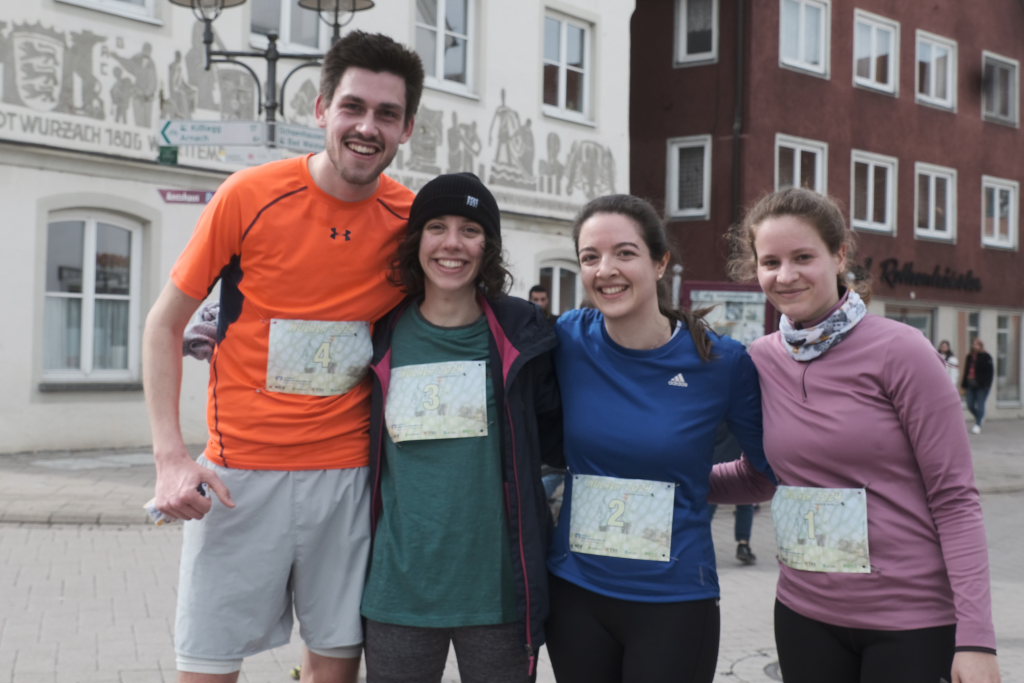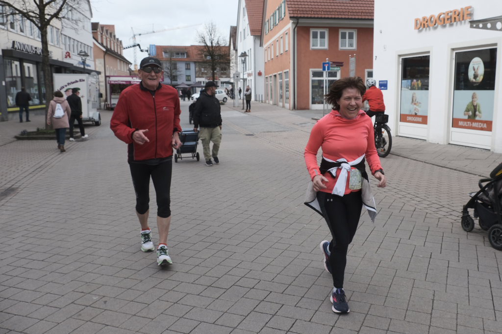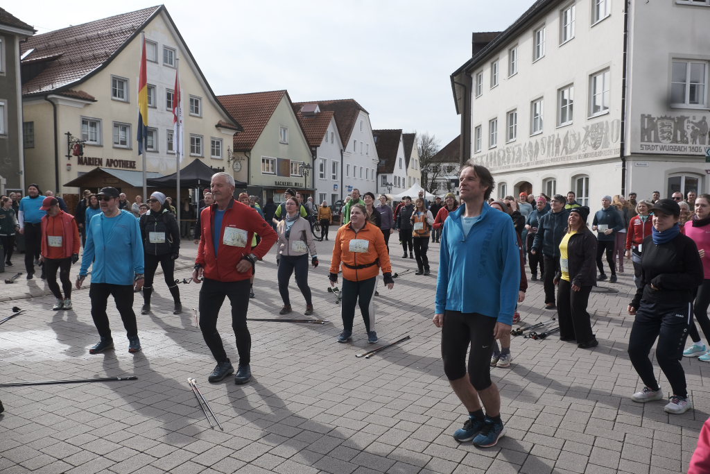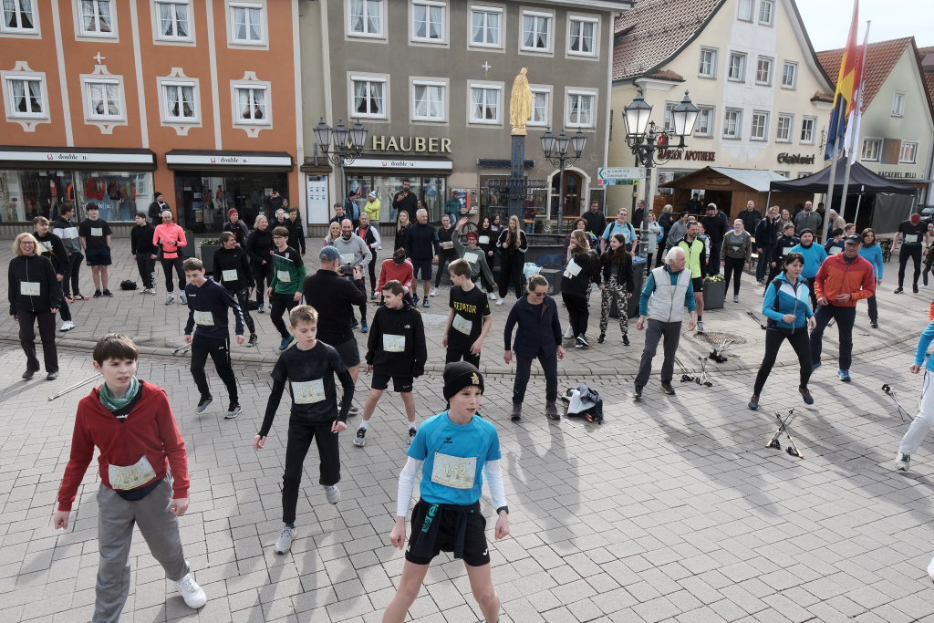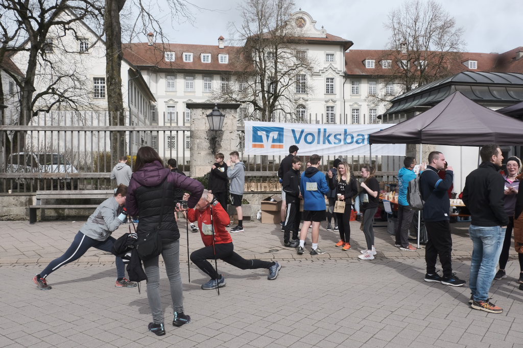 Das Besondere am Wurzacher Landschafts-Lauf ist, dass Jeder sein eigenes Tempo finden kann. Erstaunlich viele Läufer bevorzugten in diesem Jahr, zumindest bis zum Erreichen des höchsten Punktes auf dem Ziegelbacher Greut, die schnellere Fortbewegungsvariante. So kam es, dass der schnellste Teilnehmer, der die gesamte kleine Schleife gejoggt war, bereits nach gut 40 Minuten im Ziel war, während andere, die nur gewandert waren, erst kurz vor Beginn der Siegerehrung wieder im Zielraum bei Rathaus und Schloss zurückkehrten, wo sie wie alle Teilnehmer vom Jugendrotkreuz mit Obst und Wasser versorgt wurden.