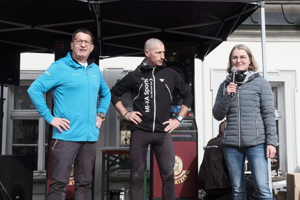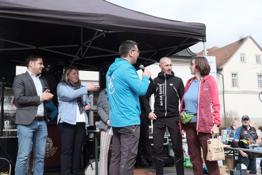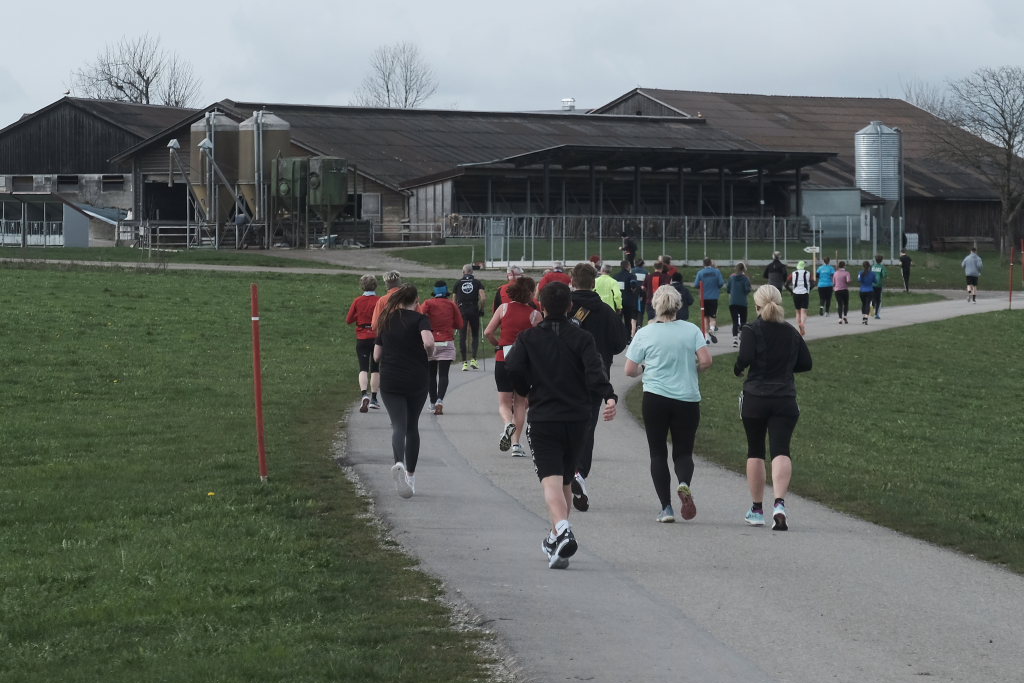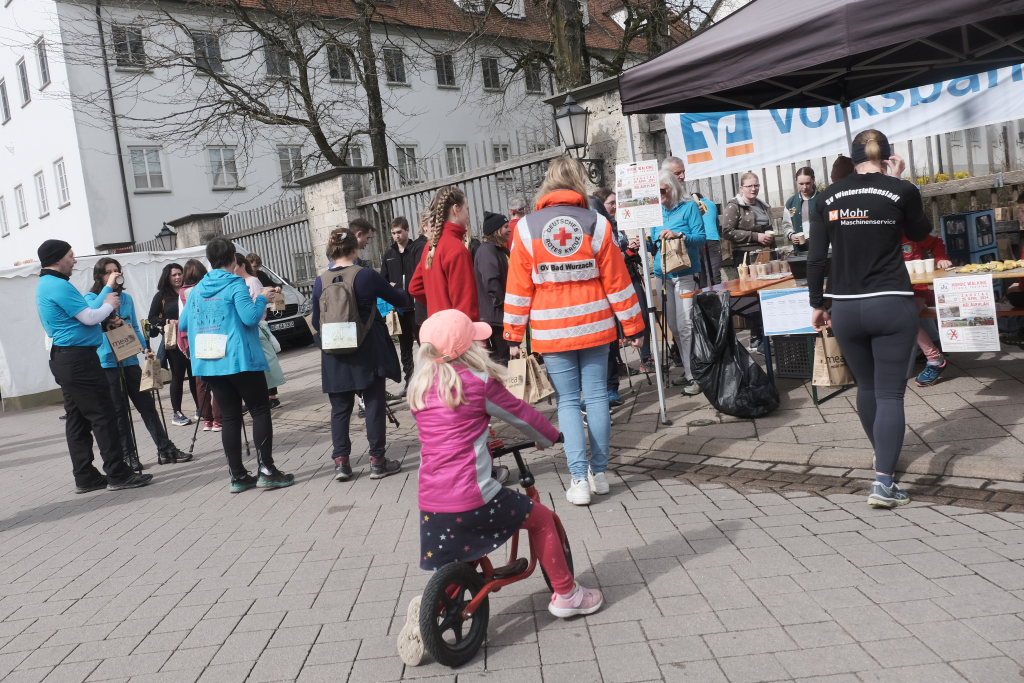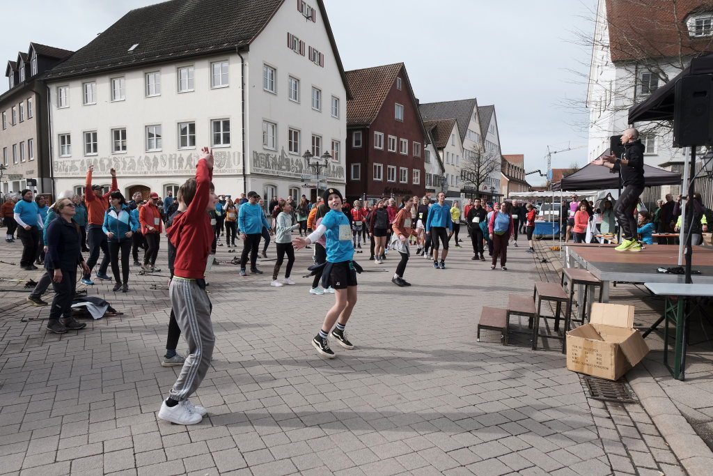 Das Besondere am Wurzacher Landschafts-Lauf ist, dass Jeder sein eigenes Tempo finden kann. Erstaunlich viele Läufer bevorzugten in diesem Jahr, zumindest bis zum Erreichen des höchsten Punktes auf dem Ziegelbacher Greut, die schnellere Fortbewegungsvariante. So kam es, dass der schnellste Teilnehmer, der die gesamte kleine Schleife gejoggt war, bereits nach gut 40 Minuten im Ziel war, während andere, die nur gewandert waren, erst kurz vor Beginn der Siegerehrung wieder im Zielraum bei Rathaus und Schloss zurückkehrten, wo sie wie alle Teilnehmer vom Jugendrotkreuz mit Obst und Wasser versorgt wurden.