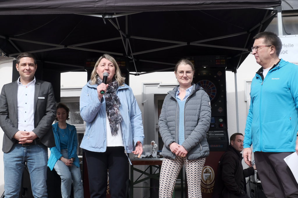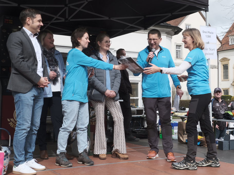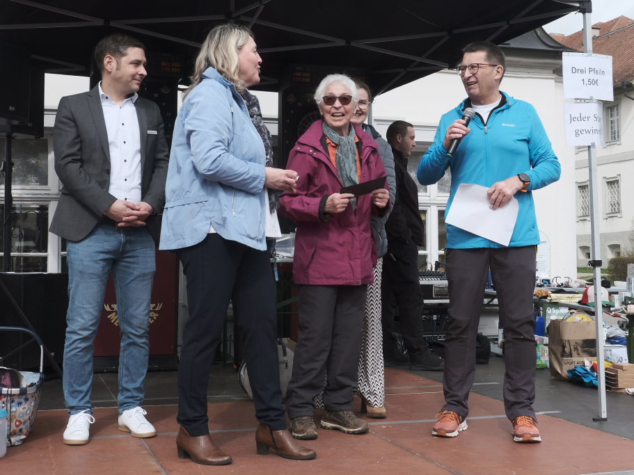 Die Preisvergabe wurde durch Bürgermeisterin Alexandra Scherer, die HGV-Vorständin Christiane Vincon-Westermayer und Markus Buhmann, Filialleiter der Volksbank Allgäu-Oberschwaben, unter der Leitung von Hermann Rast vorgenommen. Die Bürgermeisterin freute sich in ihrem Grußwort bei der Siegerehrung auf der kleinen Bühne vor dem Schloss auch darüber, dass an diesem Fit-Fun-Shopping-Tag der Superlative bereits schon weit vor dem eigentlichen Beginn der Geschäftsöffnungszeiten ein großer Besucheransturm eingesetzt hatte.