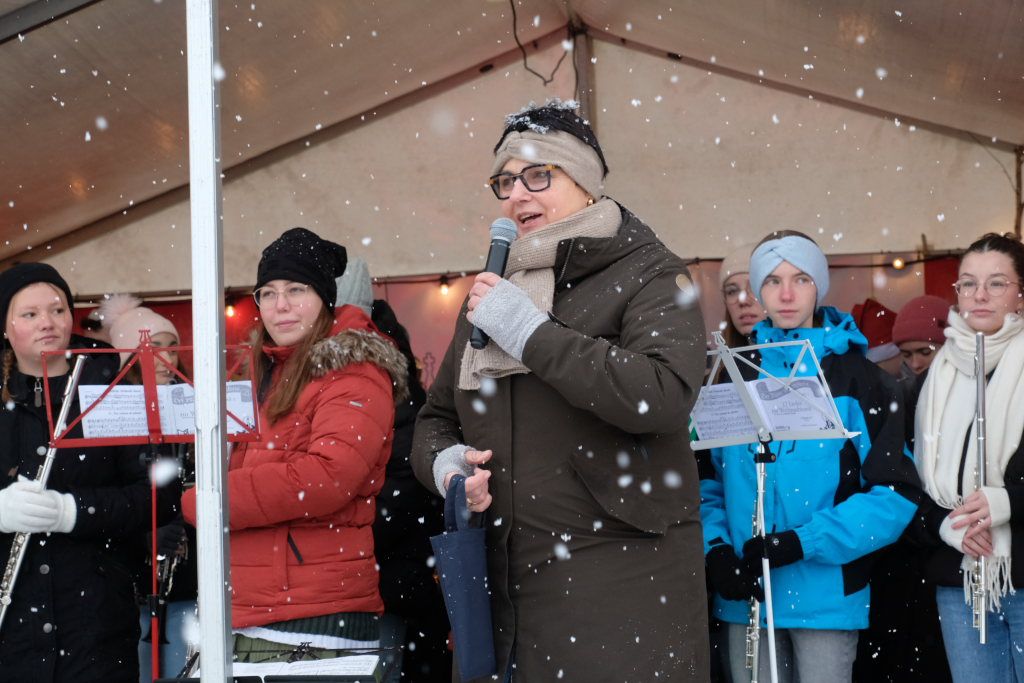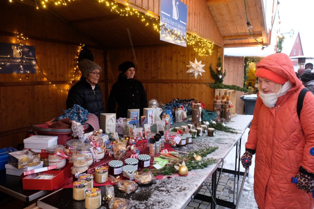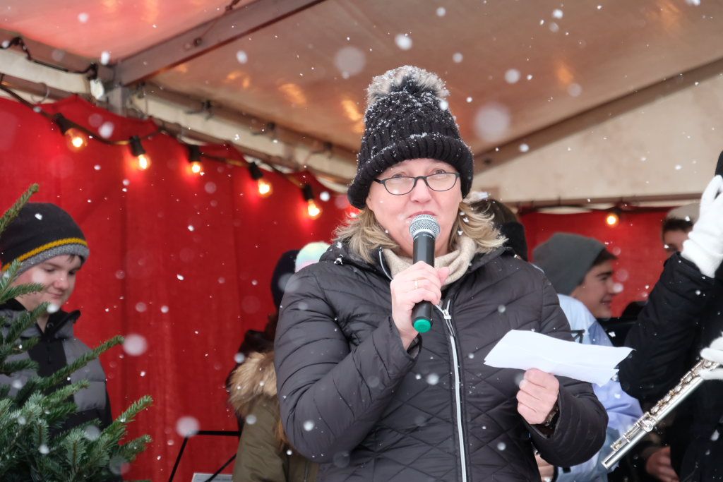 Als dann Bürgermeisterin Alexandra Scherer am Nachmittag den Markt eröffnete, war der „Marktplatz“ vom Schnee befreit. Sie lobte den Einsatz des Bauhofes und dankte dem im vergangenen Jahr bewährten Orga-Team um die Ehrenamtlichen Gisela Brodd, Petra Greiner und Karl Mayer sowie Johanne Gaipl und Albertine Schoeters von der Bad Wurzach-Info für ihr Engagement, um den Weihnachtsmarkt durchführen zu können