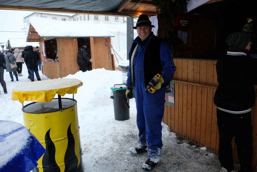 Die Bauhofmitarbeiter waren beim Räumdienst vollkommen eingespannt. Durch die Steilheit der Dächer des historischen Gebäudes drohten Dachlawinen, so dass der direkte Zugang vom Parkplatz über den kleinen Innenhof zwischen Tor und Gebäude aus Sicherheitsgründen gesperrt werden musste. Das galt natürlich auch für dort die stehenden Verkaufs-Hütten. Ein Kunsthandwerker hatte Glück: Er durfte seine Waren im Gewölbe, dem Ausstellungsraum des Naturschutzzentrum feilbieten, für einen Verein gab es diese Möglichkeit nicht.