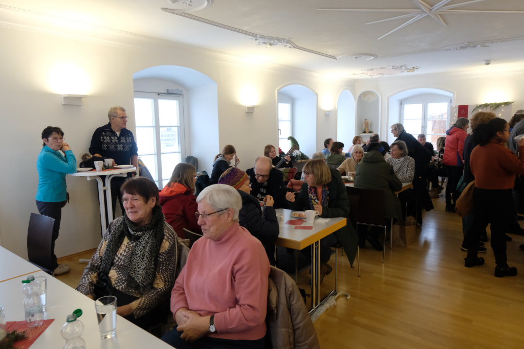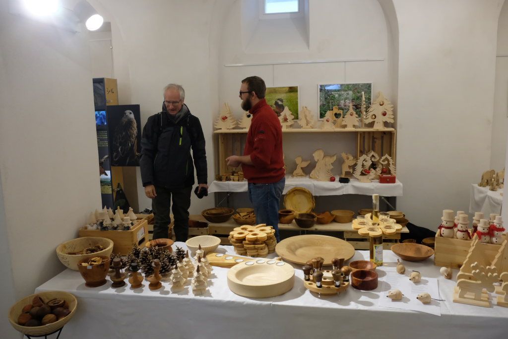 Aber auch im Liederkranzcafé im Nebenraum des Sitzungssaales wurde musiziert: Gisela Hecht-Huber unterhielt die Gäste mit einer Partnerin mit besinnlichen Gitarrenklängen. Bei Außentemperaturen von unter Null wurde das Angebot von “Chorioso” mit Kaffee, Tee und Kuchen gerne im gemütlich dekorierten und mollig warmen Raum gerne angenommen, während nebenan im Sitzungssaal und in der Stadtbücherei im zweiten Obergeschoss die Kunsthandwerker ihren bunten Strauß an Handwerkskunst feilboten. Für die Kleinen gab es in der Bücherei eine Vorlesestunde und beim Kinderbasteln in der BWI wurden die Kids von den Mitarbeitern von BWI und Naturschutzzentrum umsorgt.