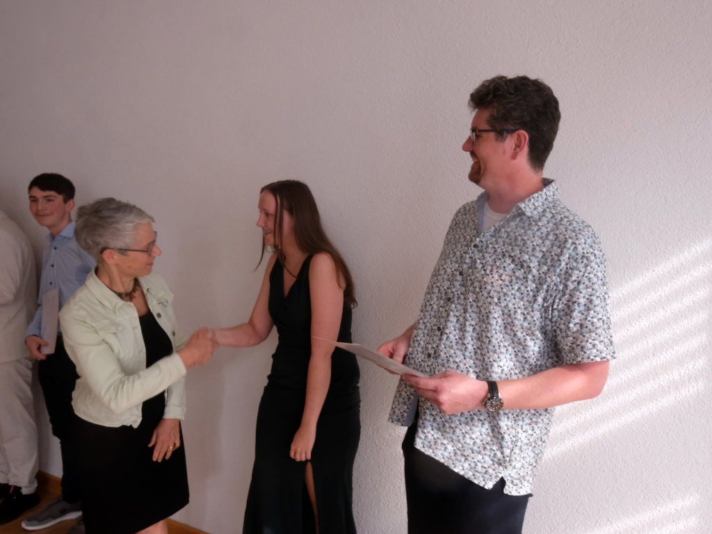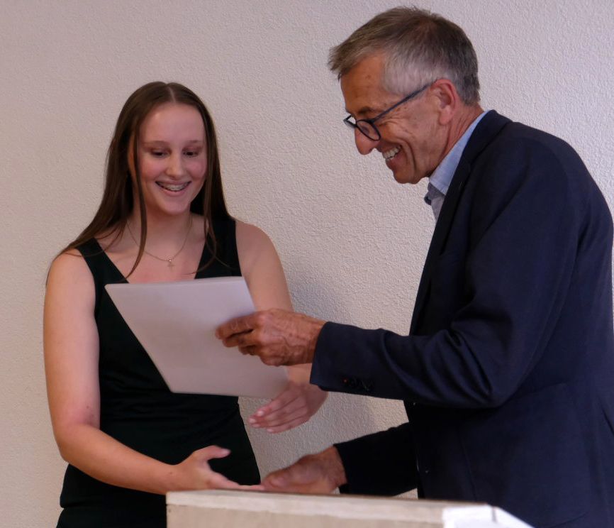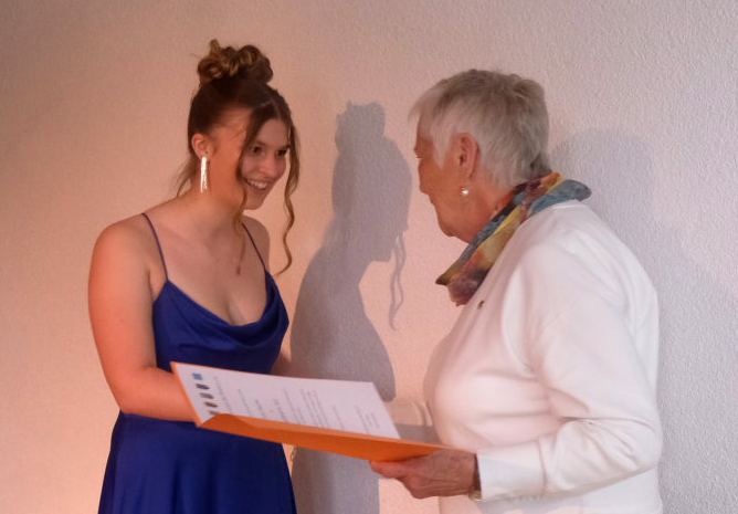 Beate Ebel übergab den Sonderpreis des Partnerschaftsvereines für überragende Leistungen im Fach Englisch. Es sei das Hauptanliegen des Vereines, dass sich Menschen aus verschiedenen Ländern kennen und verstehen lernen. „Deswegen möchten wir besonders gute Leistungen im Fach Englisch belohnen und haben vor einigen Jahren den Begabtenpreis gestiftet.“ Urkunde und Buchgutschein ging an Luisa Maucher.
