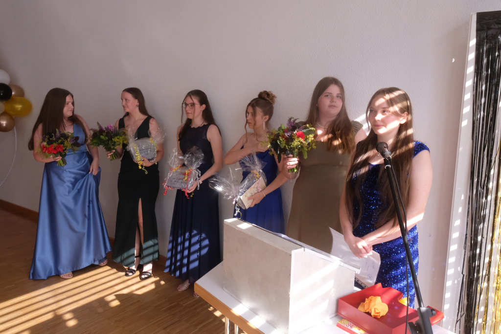 Auch die Stadt hat vor einigen Jahren einen Sonderpreis gestiftet, nämlich den für die Jahrgangsbesten. Karl-Heinz Buschle überreichte diesen stellvertretend für Bürgermeisterin Alexandra Scherer. In seinem Grußwort ging er auf die Zukunft der AbsolventInnen ein. Ob sie einen höheren Bildungsabschluss anstrebten oder eine Ausbildung beginnen werden, einen Rat gab er ihnen: „Seid mutig und offen für neue Herausforderungen.“ Er bedankte sich auch bei den Eltern, die mit ihrer Entscheidung, ihre Kinder vor sechs Jahren auf die Werkrealschule zu schicken, der Schule ihr Vertrauen geschenkt hatten, damit aber auch den Schulstandort Bad Wurzach gestärkt hatten. Der Ehrenpreis, verbunden mit einer Urkunde und einem Buchpreis ging in diesem Jahr an Madita Bohr, die mit einem Notendurchschnitt von 1,4 das beste Ergebnis aller drei Abschlussklassen erzielt hatte.