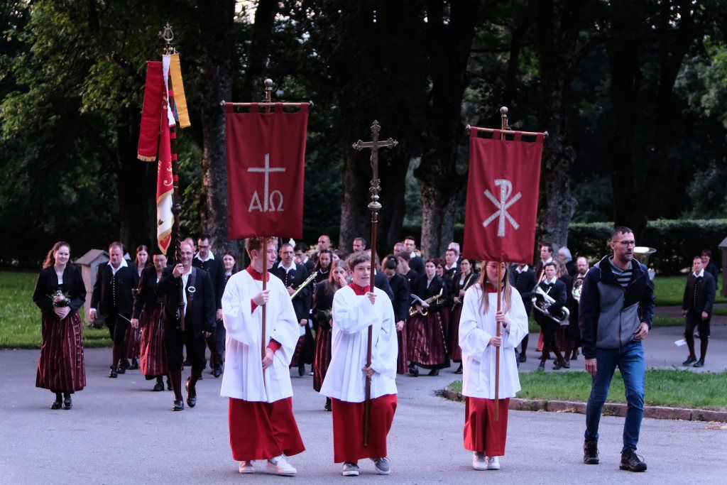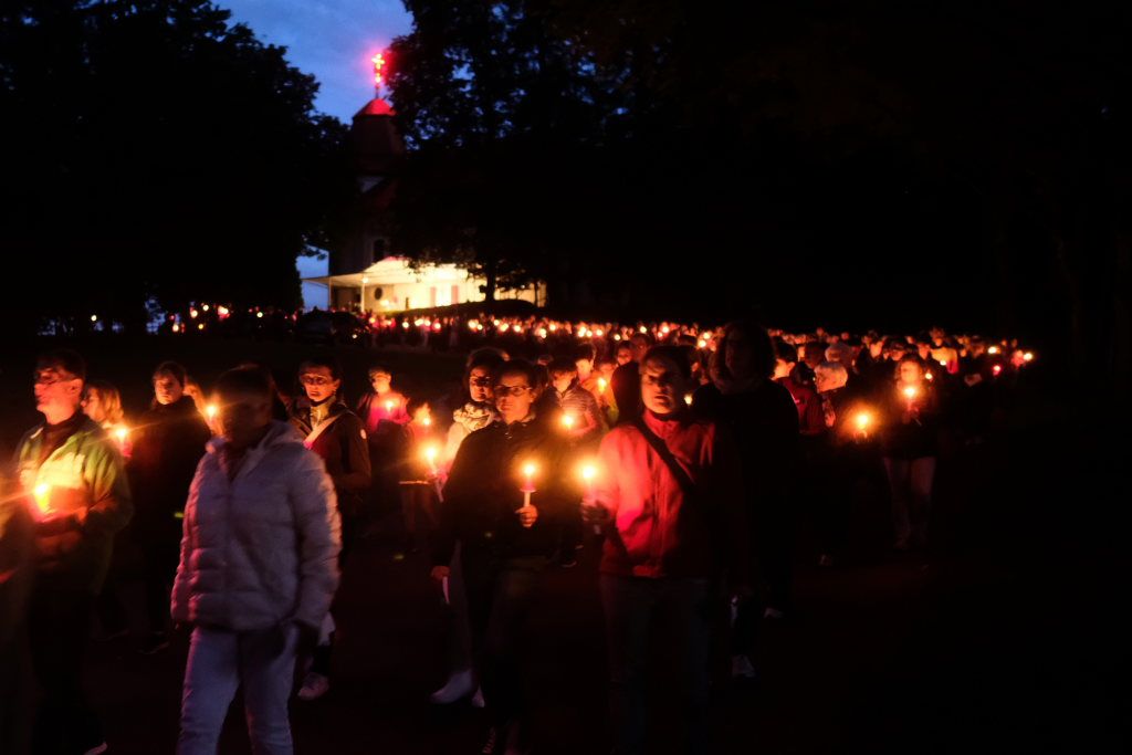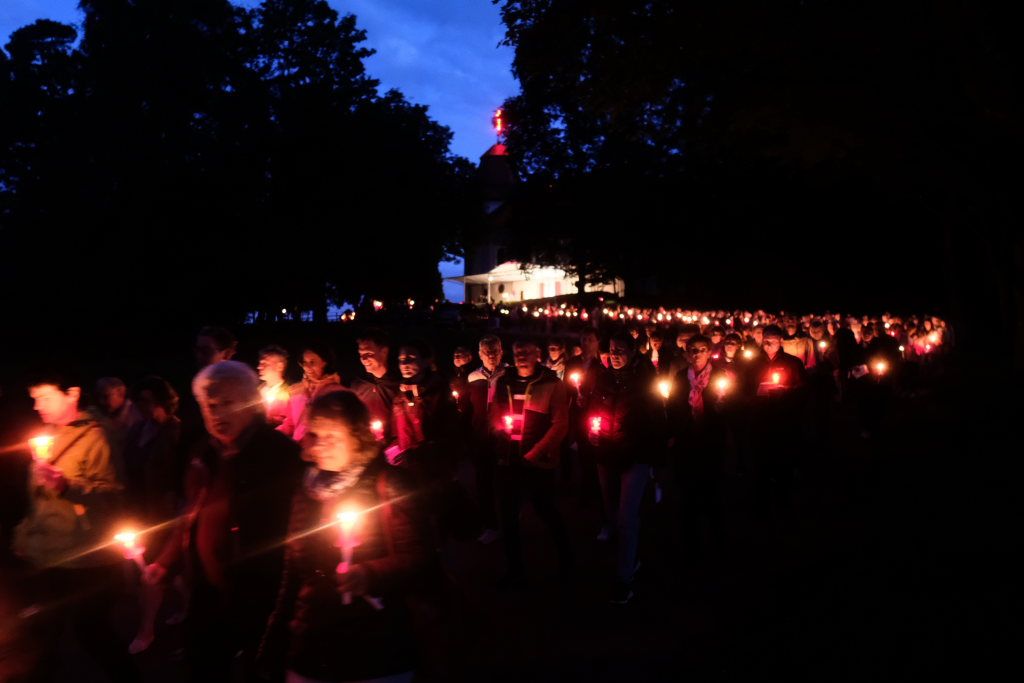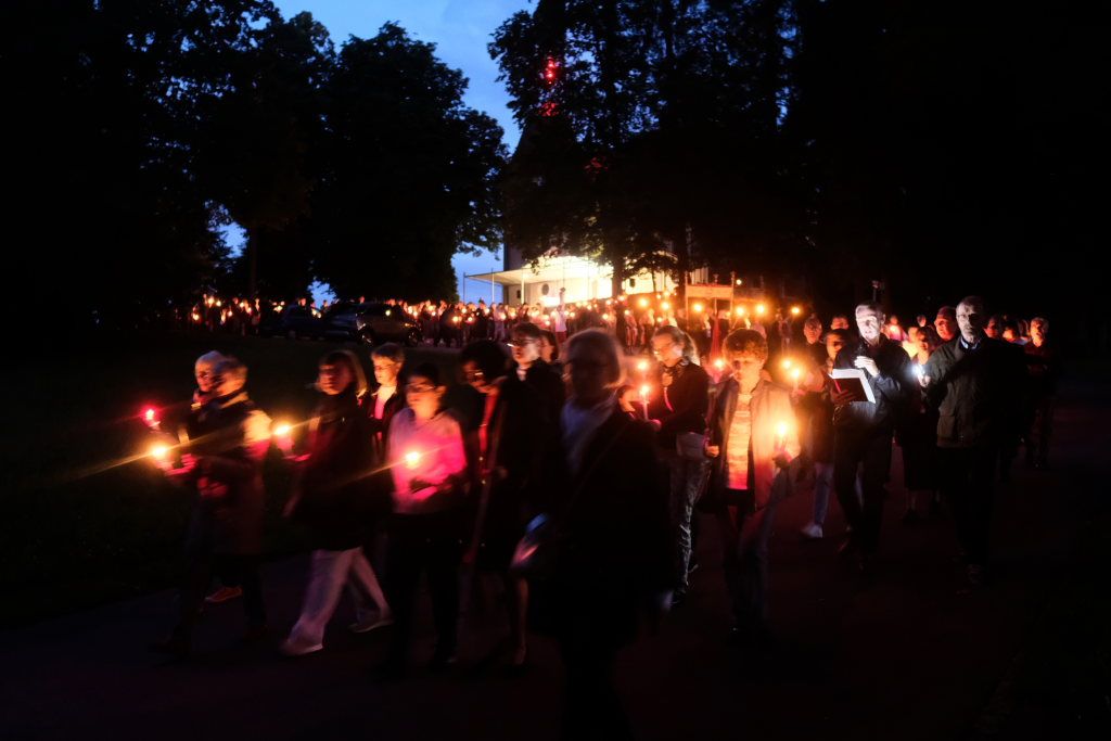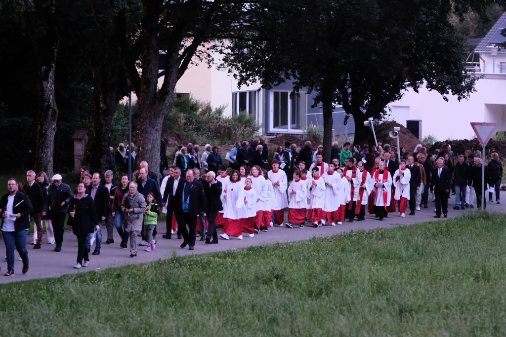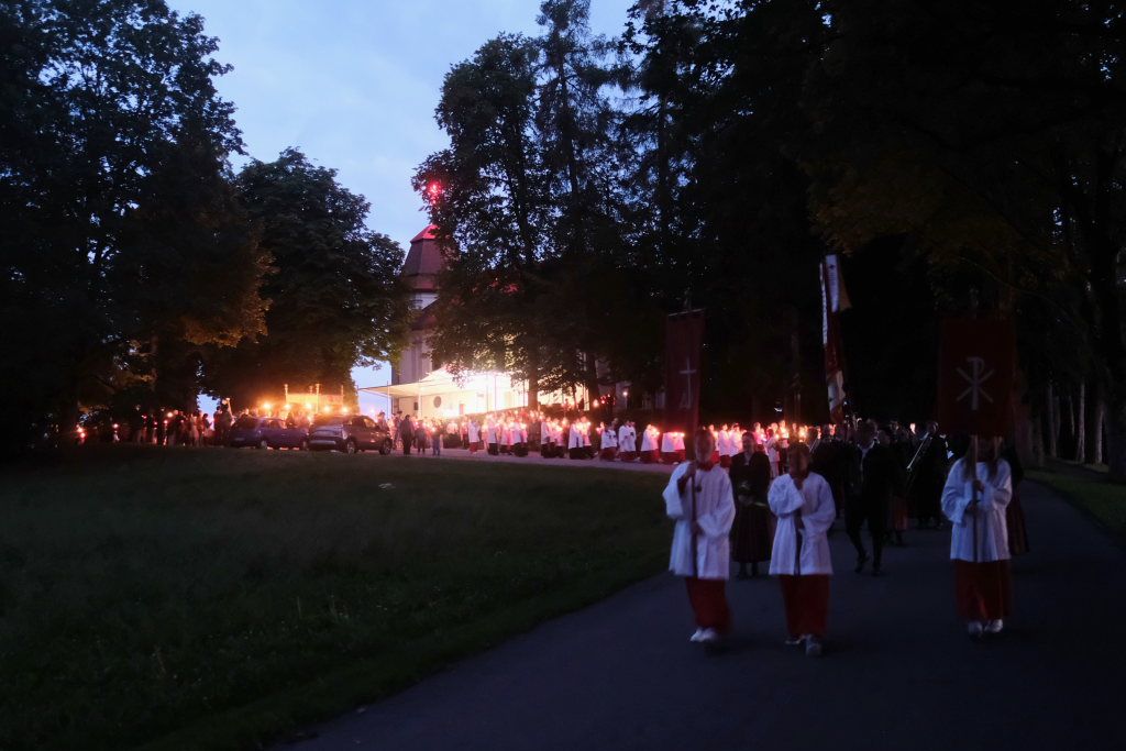 Pfarrer Stefan Maier hatte die diesjährige Prozession unter das Leitmotiv gestellt: “Ja sagen zu Gott und Jesus Christus, der durch sein Sterben auf dem Berg Golgotha den Menschen ein Liebesangebot gemacht hat, ihn in unser Leben einzuladen”. Sehr viele Gläubige nahmen das Angebot von Pfarrer Maier an, sich vorzustellen, beim Weg auf den Gottesberg – vorbei an den Kreuzwegstationen – eben jenen Berg Golgotha zu erklimmen. Der Prozessionszug mit Stadtkapelle und Kirchenchor an der Spitze zum Wortgottesdienst auf dem Gottesberg setzte sich um 21.00 Uhr am vergangenen Sonntag (7.7.) in Bewegung.
