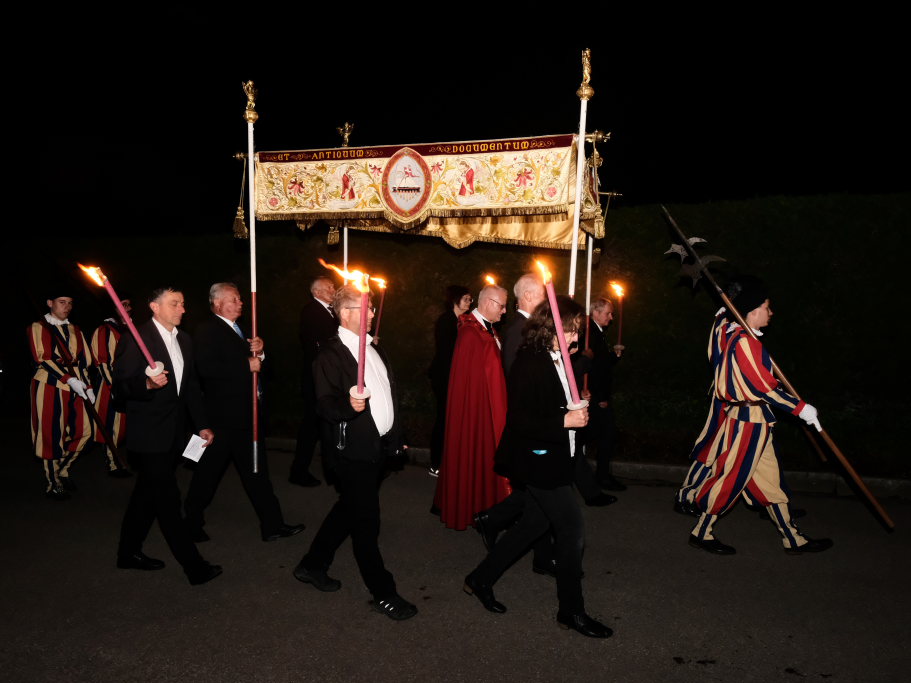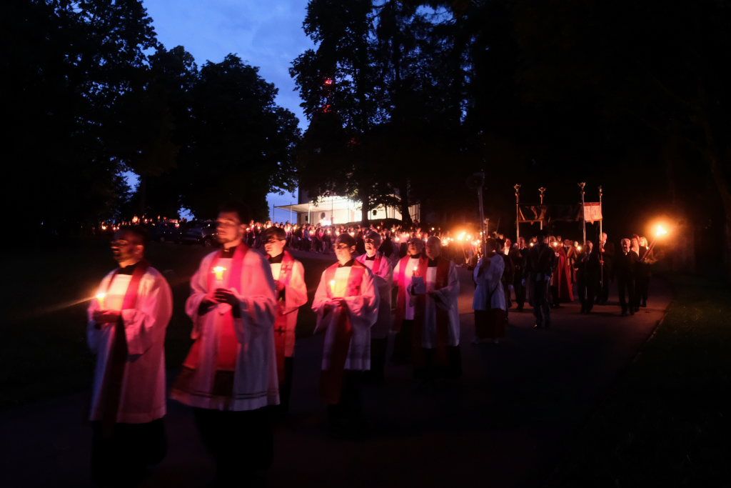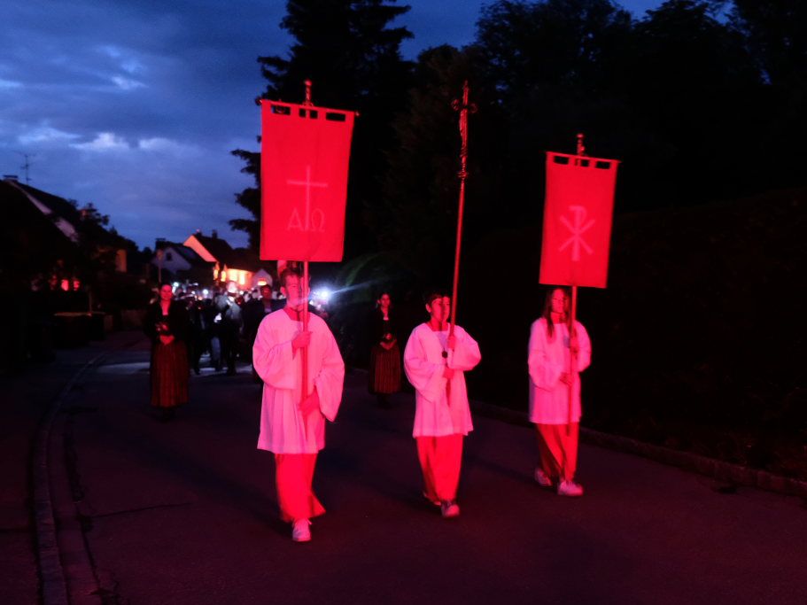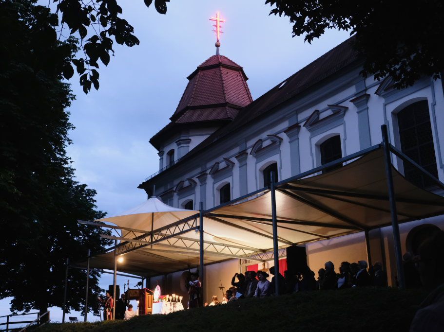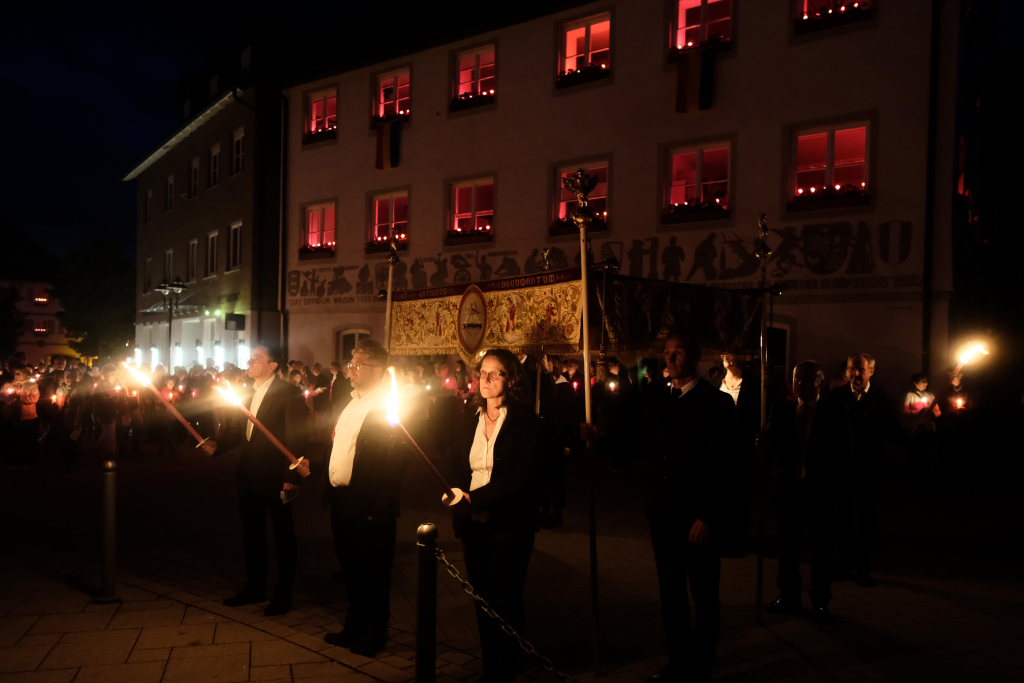 Bad Wurzach – Fünf Jahre nach dem ersten Heilig-Blut-Fest in Bad Wurzach im Jahre 1928 wurde erstmals die Lichterprozession hinauf zur Heilig-Kreuz-Kirche – so der Weihename der Gottesbergkirche – durchgeführt. In diesem Jahr gab es für den Auftakt des Heilig-Blut-Festes in Bad Wurzach einige Neuerungen. So wurde der Schluss-Segen vor der in Rot getauchten St. Verena-Kirche gespendet. Beim Wortgottesdienst auf dem Gottesberg wurde eine zentrale Stelle in Bachs Johannes-Passion betrachtet.