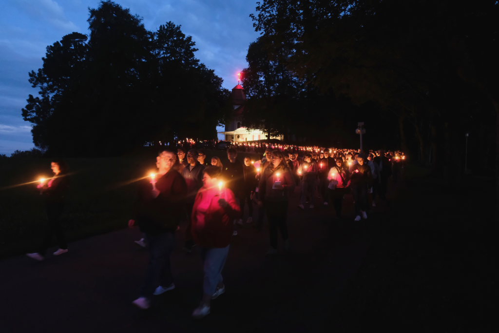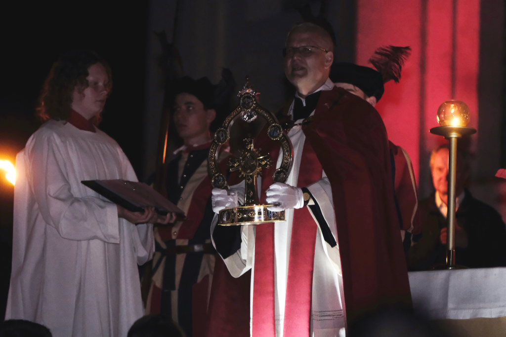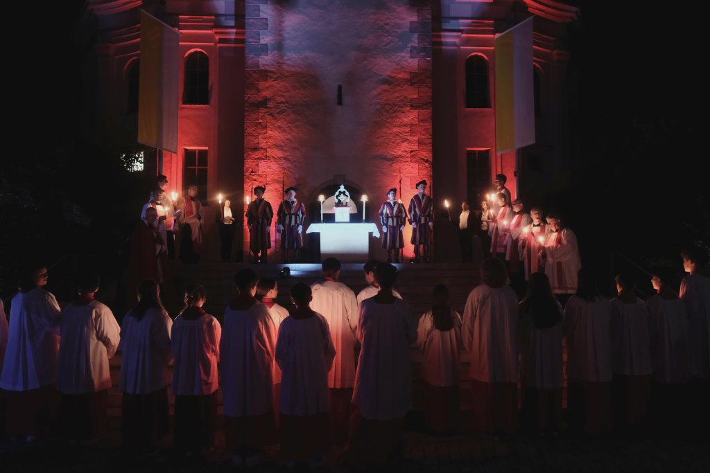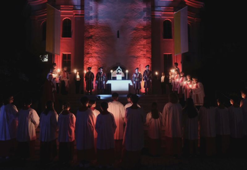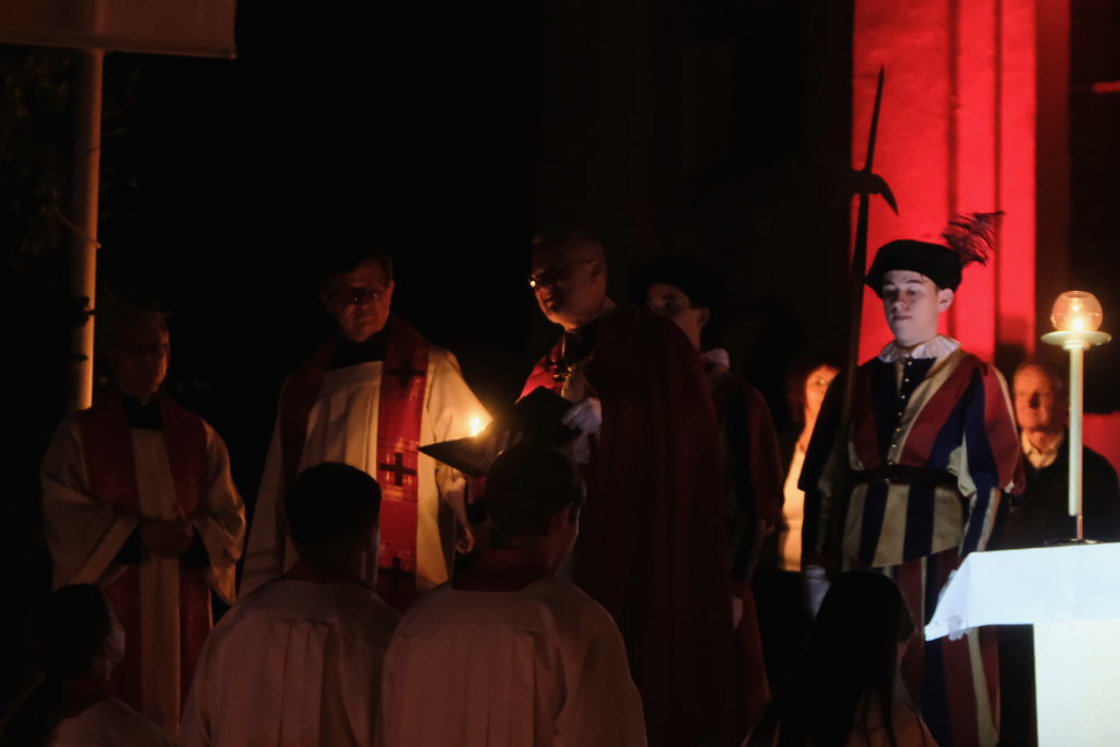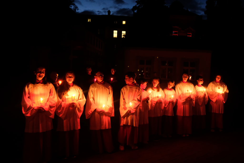 Bad Wurzach – Fünf Jahre nach dem ersten Heilig-Blut-Fest in Bad Wurzach im Jahre 1928 wurde erstmals die Lichterprozession hinauf zur Heilig-Kreuz-Kirche – so der Weihename der Gottesbergkirche – durchgeführt. In diesem Jahr gab es für den Auftakt des Heilig-Blut-Festes in Bad Wurzach einige Neuerungen. So wurde der Schluss-Segen vor der in Rot getauchten St. Verena-Kirche gespendet. Beim Wortgottesdienst auf dem Gottesberg wurde eine zentrale Stelle in Bachs Johannes-Passion betrachtet.